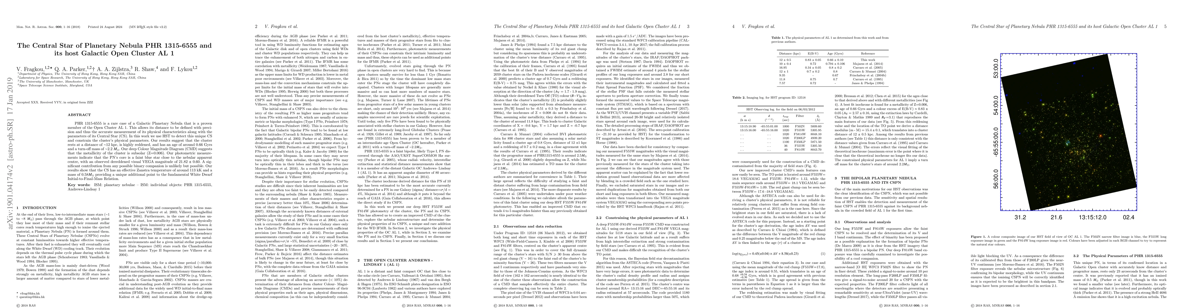 The research identifies PHR 1315-6555 as a rare planetary nebula within the Galactic open cluster AL 1, precisely determining its distance at ~12 kpc. Using HST, it reveals the central star's characteristics: a faint blue star with a dereddened magnitude of 21.82, a Zanstra temperature of 113 kK, and a mass of 0.58 M☉. The cluster is found to be subsolar metallicity, ~0.66 Gyrs old, and has a turn-off mass of ~2.2 M☉, contributing to the understanding of the White Dwarf Initial-to-Final-Mass Relation.