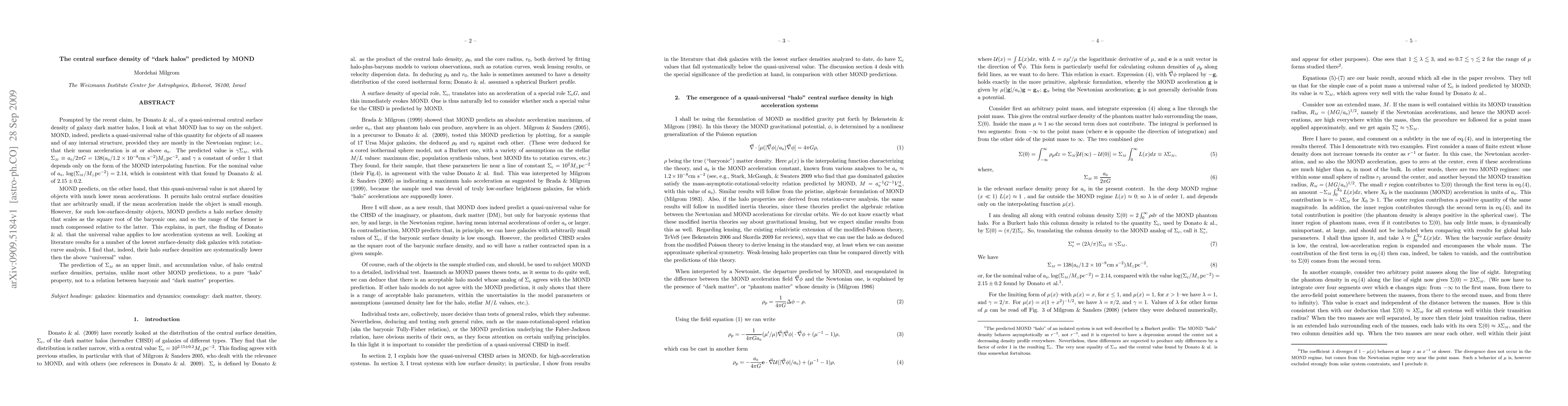 This paper examines MOND's predictions regarding the central surface density of dark matter halos, finding that MOND predicts a quasi-universal value of qSm for objects in the Newtonian regime, consistent with recent findings. It also predicts that low-acceleration objects have much lower halo densities, scaling with the square root of the baryonic density.