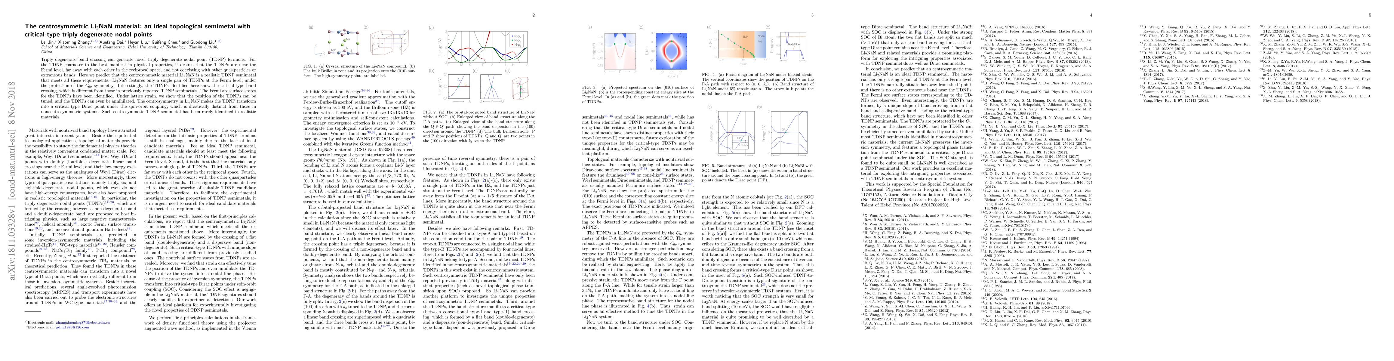 Triply degenerate band crossing can generate novel triply degenerate nodal point (TDNP) fermions. For the TDNP character to the best manifest in physical properties, it desires that the TDNPs are near the Fermi level, far away with each other in the reciprocal space, and not coexisting with other quasiparticles or extraneous bands. Here we predict that the centrosymmetic material Li2NaN is a realistic TDNP semimetal that meets all these requirements. Li2NaN features only a single pair of TDNPs at the Fermi level, under the protection of the C6v symmetry. Interestingly, the TDNPs identified here show the critical-type band crossing, which is different from those in previously reported TDNP semimetals. The Fermi arc surface states for the TDNPs have been identified. Under lattice strain, we show that the position of the TDNPs can be tuned, and the TDNPs can even be annihilated. The centrosymmetry in Li2NaN makes the TDNP transform into a critical type Dirac point under the spin-orbit coupling, which is drastically distinct from those in noncentrosymmetric systems. Such centrosymmetic TDNP semimetal has been rarely identified in realistic materials.