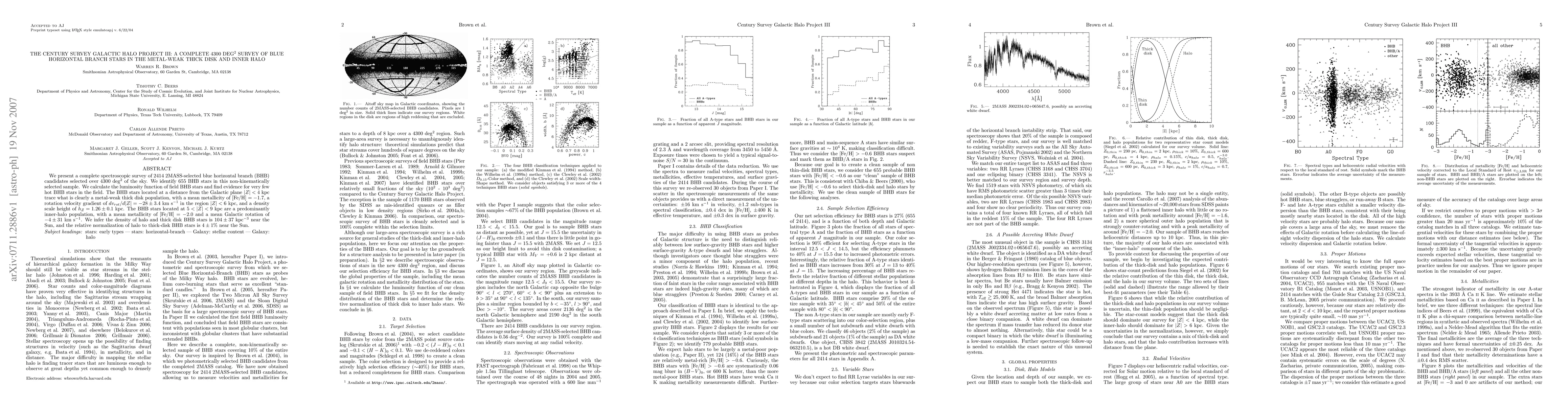 This paper reports a comprehensive spectroscopic survey of 2414 blue horizontal branch stars across 4300 deg^2, identifying 655 stars. It reveals a metal-weak thick disk population at |Z|<4 kpc with a mean metallicity of [Fe/H]= -1.7 and an inner halo population at 5<|Z|<9 kpc with [Fe/H]= -2.0.