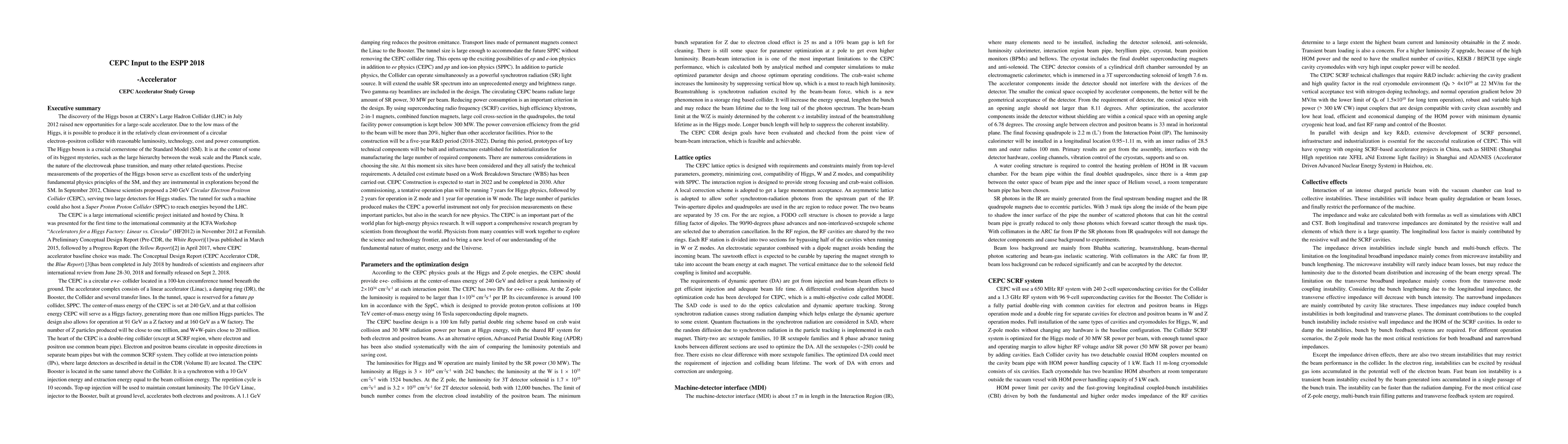 In this manuscript, we provide a summary of accelerator design and the key challenges of the CEPC accelerator, both of which are laid out in detail in the Conceptual Design Report (CDR) released in November 2018. We also outline future directions and challenges. In the Addendum, we briefly describe the planning and the international organization of the CEPC. The next step for the CEPC team is to perform detailed technical design studies. Effective international collaboration would be crucial at this stage. This submission for consideration by the ESPP is part of our dedicated effort in seeking international collaboration and support.