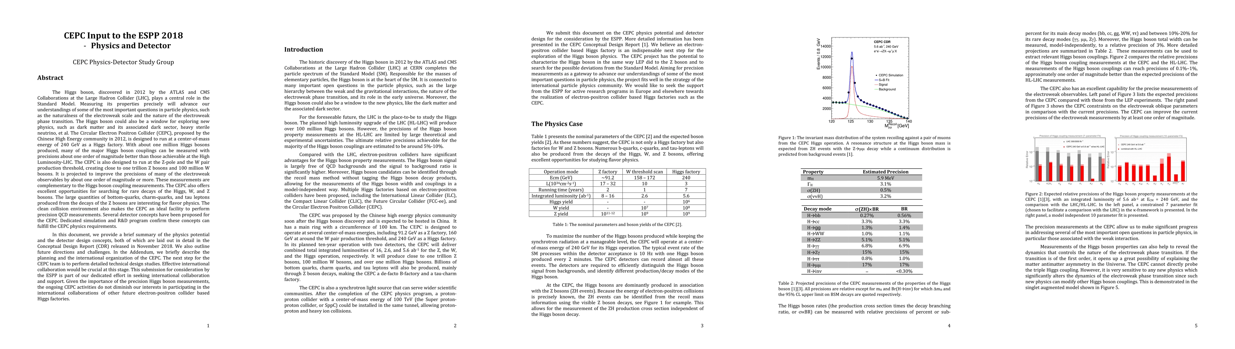 The Circular Electron Positron Collider (CEPC) is a large-scale future collider facility that can serve as a factory of the Higgs boson, the W boson and the Z boson. This document provides a brief summary of the CEPC physics potential and the detector design concepts, both of which are laid out in detail in the Conceptual Design Report (CDR) released in November 2018. We also outline future directions and challenges. In the Addendum, we briefly describe the planning and the international organization of the CEPC. The next step for the CEPC team is to perform detailed technical design studies. Effective international collaboration would be crucial at this stage. This submission for consideration by the ESPP is part of our dedicated effort in seeking international collaboration and support. Given the importance of the precision Higgs boson measurements, the ongoing CEPC activities do not diminish our interests in participating in the international collaborations of other future electron-positron collider based Higgs factories.