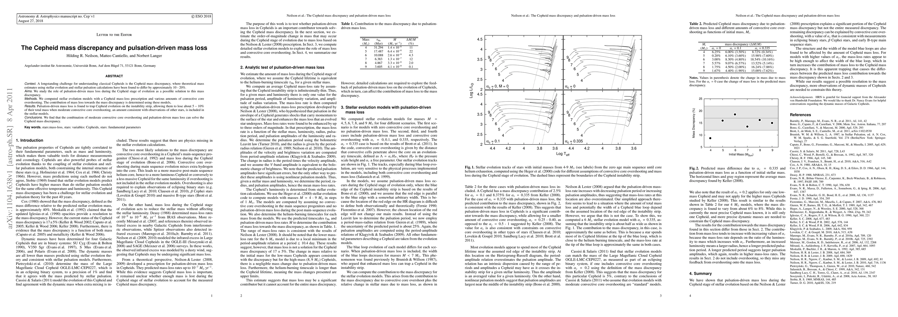 The Cepheid mass discrepancy, a difference between theoretical and observed masses, is addressed by studying pulsation-driven mass loss. Models incorporating this mass loss and moderate convective core overshooting resolve the discrepancy.