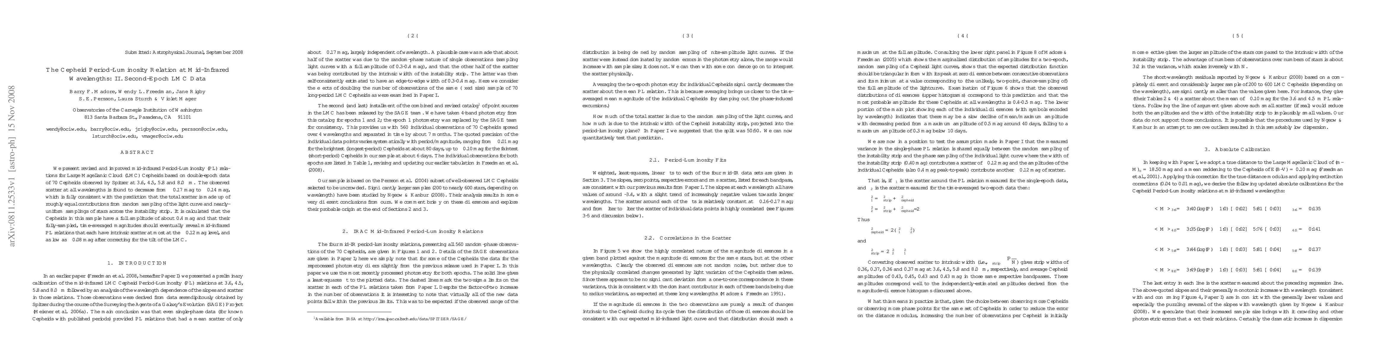 This paper refines the mid-infrared Period-Luminosity relations for LMC Cepheids using double-epoch Spitzer data, reducing the observed scatter to +/-0.14 mag and predicting an intrinsic scatter of +/-0.12 mag or less after corrections.