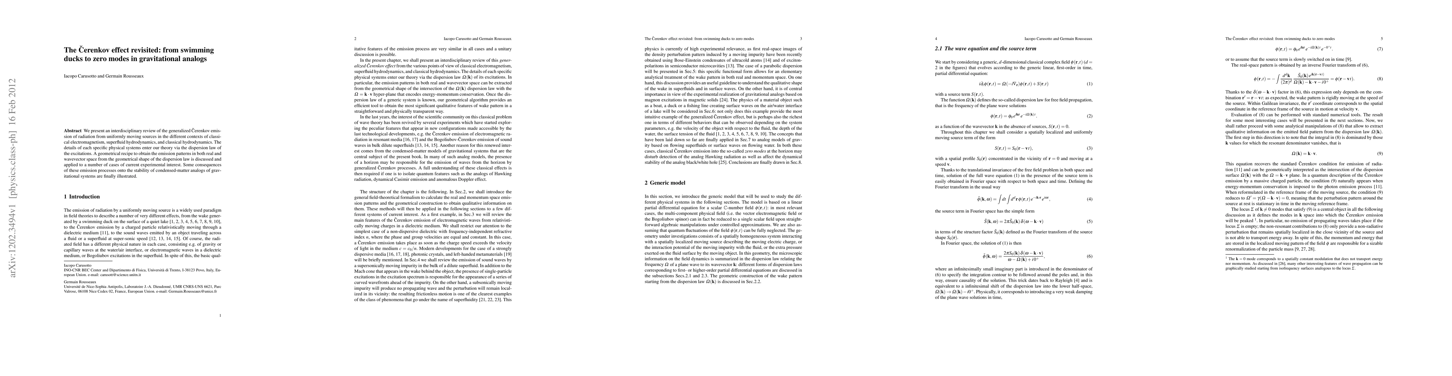 We present an interdisciplinary review of the generalized Cerenkov emission of radiation from uniformly moving sources in the different contexts of classical electromagnetism, superfluid hydrodynamics, and classical hydrodynamics. The details of each specific physical systems enter our theory via the dispersion law of the excitations. A geometrical recipe to obtain the emission patterns in both real and wavevector space from the geometrical shape of the dispersion law is discussed and applied to a number of cases of current experimental interest. Some consequences of these emission processes onto the stability of condensed-matter analogs of gravitational systems are finally illustrated.