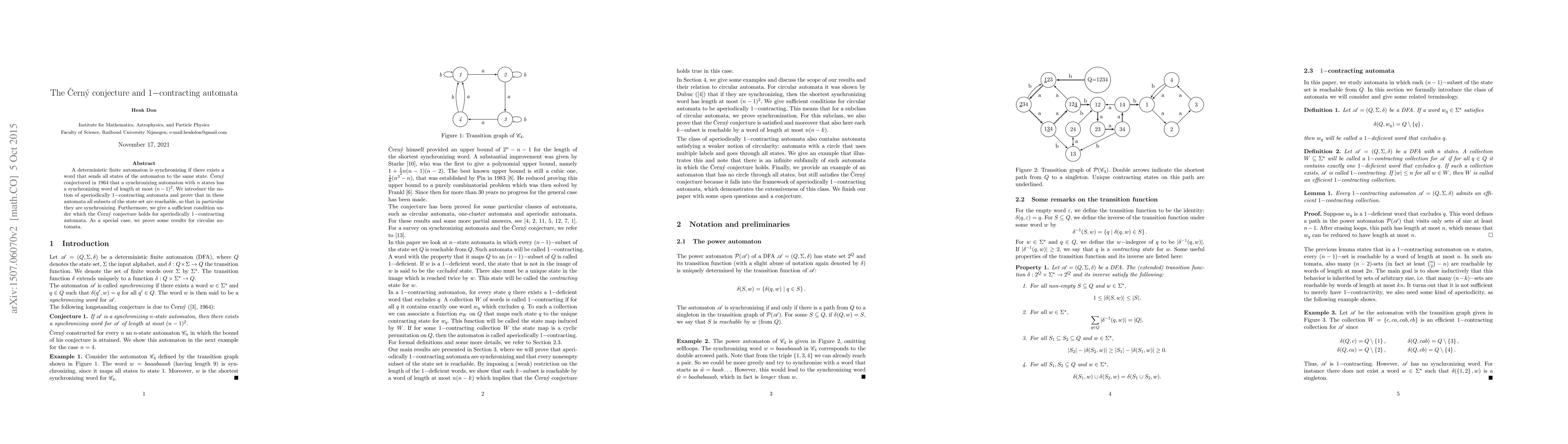 A deterministic finite automaton is synchronizing if there exists a word that sends all states of the automaton to the same state. \v{C}ern\'y conjectured in 1964 that a synchronizing automaton with $n$ states has a synchronizing word of length at most $(n-1)^2$. We introduce the notion of aperiodically $1-$contracting automata and prove that in these automata all subsets of the state set are reachable, so that in particular they are synchronizing. Furthermore, we give a sufficient condition under which the \v{C}ern\'y conjecture holds for aperiodically $1-$contracting automata. As a special case, we prove some results for circular automata.