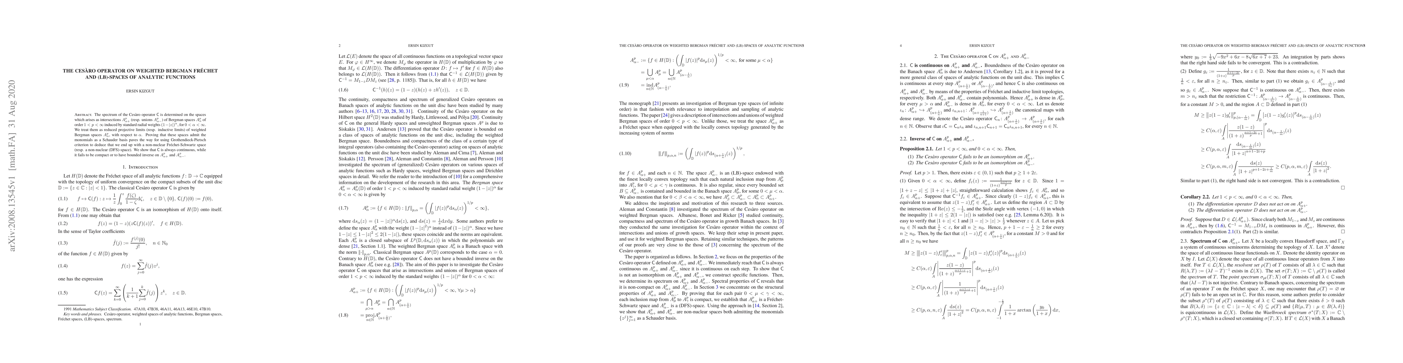 The spectrum of the Ces\`aro operator $\mathsf{C}$ is determined on the spaces which arises as intersections $A^p_{\alpha +}$ (resp. unions $A^p_{\alpha -}$) of Bergman spaces $A_\alpha^p$ of order $1