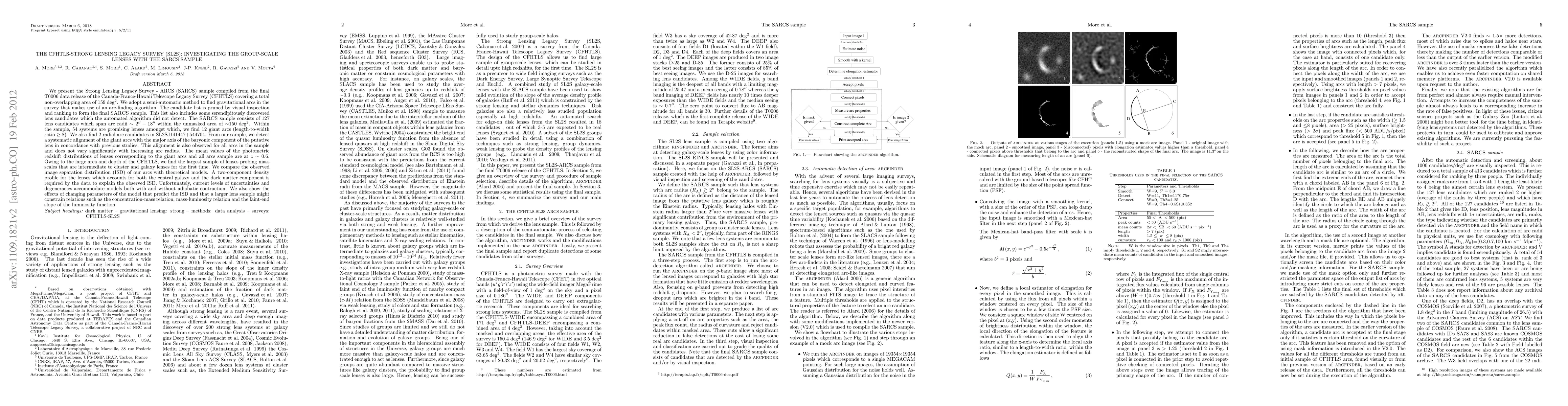 The SARCS sample of 127 lens candidates from the CFHTLS survey reveals giant arcs aligned with the baryonic component of the lens, with a peak redshift distribution at z~0.6. A two-component density profile is required to explain the observed image separation distribution.