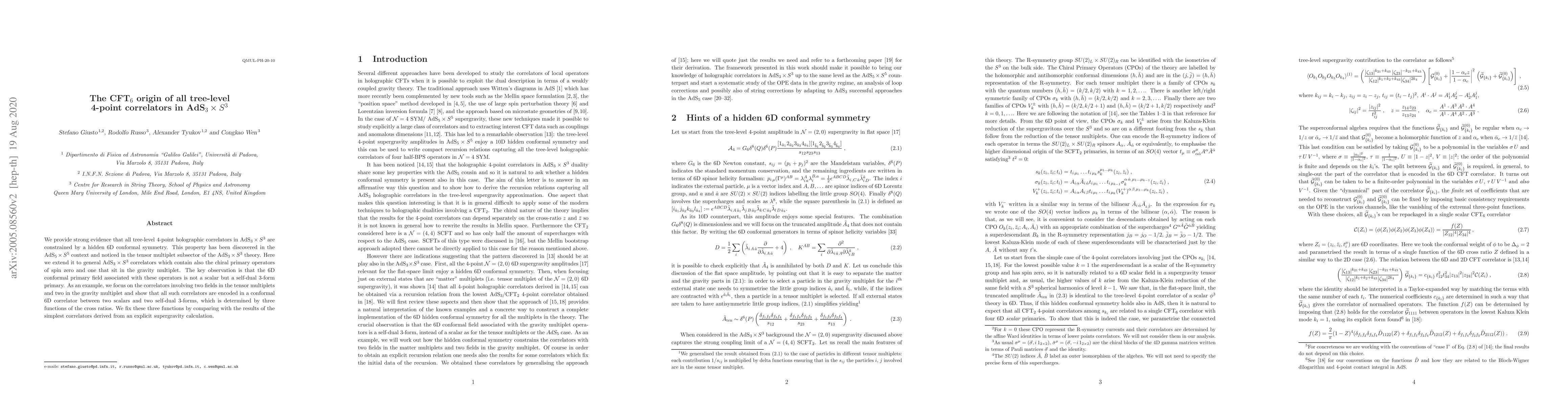 This paper demonstrates that all tree-level 4-point correlators in AdS$_3 \times S^3$ are constrained by a hidden 6D conformal symmetry, specifically through a self-dual 3-form primary field. It extends this observation to general correlators, showing that they are encoded in a conformal 6D correlator determined by three functions of cross ratios, fixed by comparing with supergravity calculations.