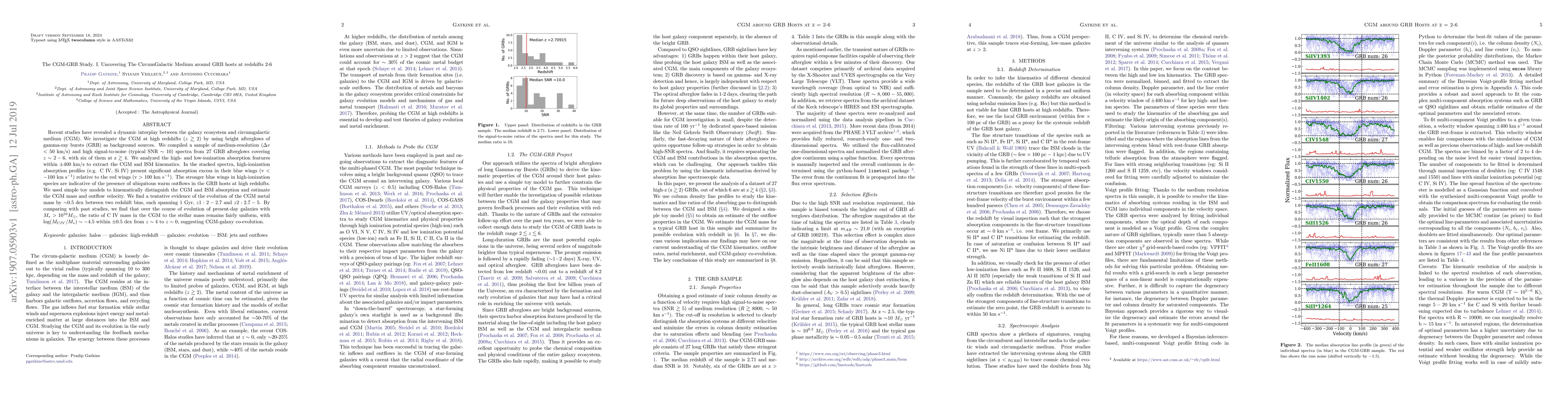 This paper investigates the circumgalactic medium (CGM) around gamma-ray burst (GRB) hosts at high redshifts using their bright afterglows. It finds evidence of warm outflows in the CGM and suggests a uniform ratio of C IV mass in the CGM to stellar mass, indicating co-evolution between CGM and galaxies over time.