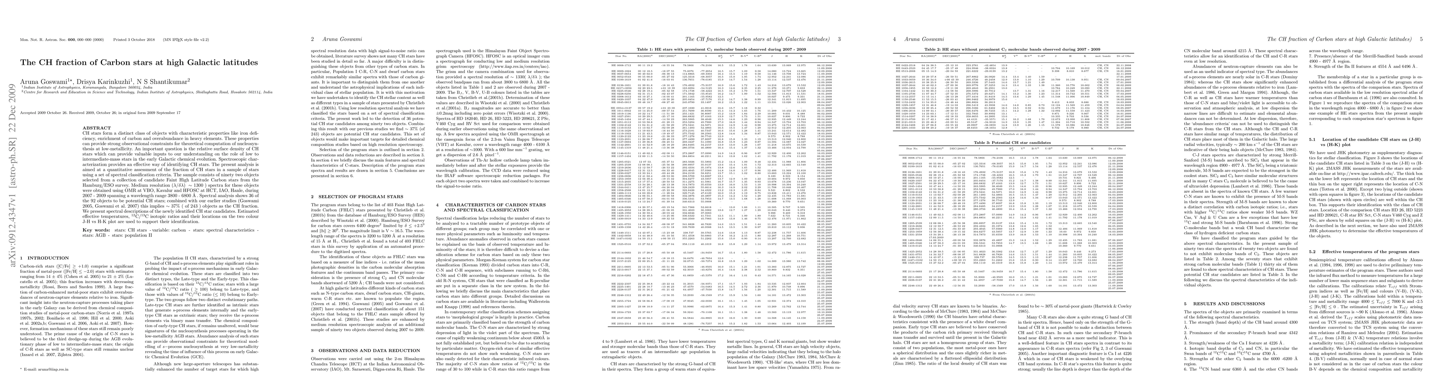 CH stars form a distinct class of objects with characteristic properties like iron deficiency, enrichment of carbon and overabundance in heavy elements. These properties can provide strong observational constraints for theoretical computation of nucleosynthesis at low-metallicity. An important question is the relative surface density of CH stars which can provide valuable inputs to our understanding on the role of low to intermediate-mass stars in the early Galactic chemical evolution. Spectroscopic characterization provides an effective way of identifying CH stars. The present analysis is aimed at a quantitative assessment of the fraction of CH stars in a sample of stars using a set of spectral classification criteria. The sample consists of 92 objects selected from a collection of candidate Faint High Latitude Carbon stars from the Hamburg/ESO survey. Medium resolution (R ~ 1300) spectra for these objects were obtained using OMR at VBO, Kavalur and HFOSC at HCT, IAO, Hanle, during 2007 - 2009 spanning a wavelength range 3800 - 6800 A. Spectral analysis shows 36 of the 92 objects to be potential CH stars; combined with our earlier studies (Goswami 2005, Goswami et al. 2007) this implies ~ 37% (of 243) objects as the CH fraction. We present spectral descriptions of the newly identified CH star candidates. Estimated effective temperatures, 12C/13C isotopic ratios and their locations on the two colour J-H vs H-K plot are used to support their identification.
