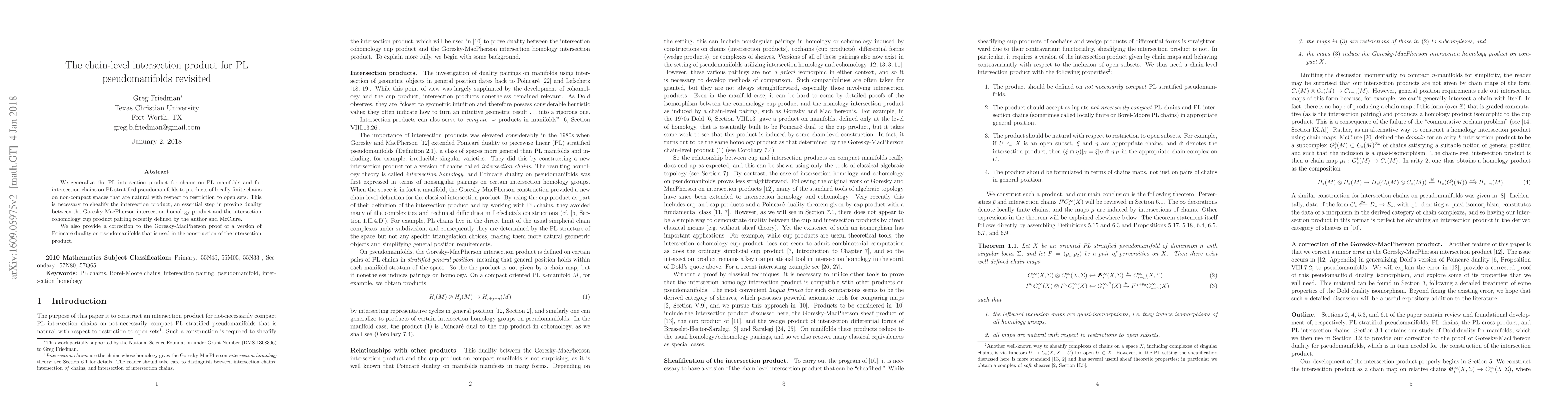 Summary: This paper generalizes the PL intersection product for chains on PL pseudomanifolds and corrects an error in the Goresky-MacPherson proof of Poincaré duality, aiming to sheafify the intersection product and establish duality between the intersection homology and cohomology products.