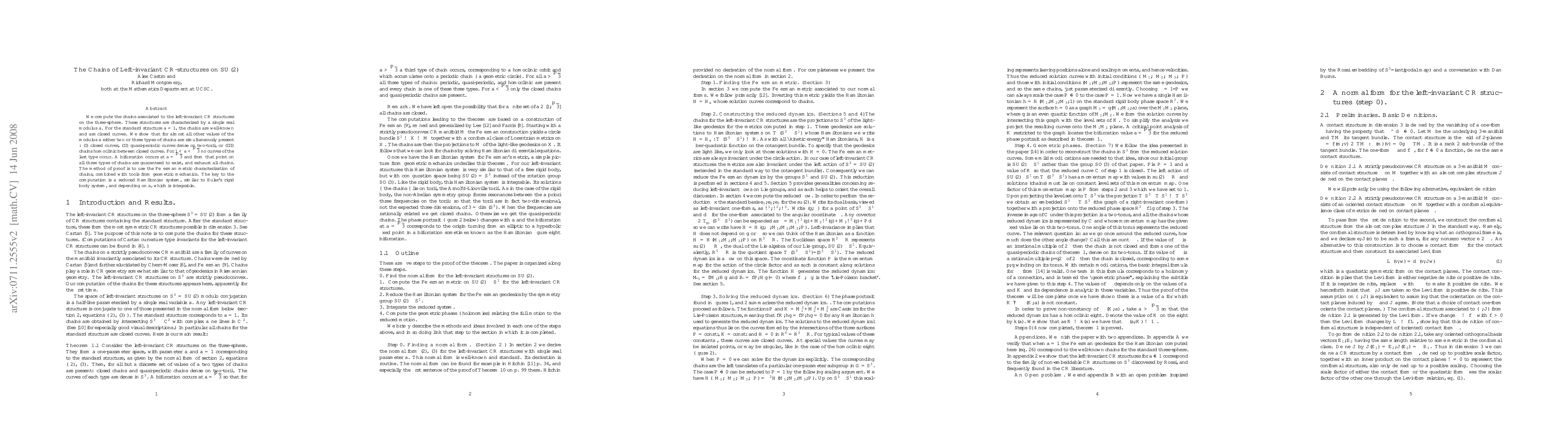 This paper explores left-invariant CR-structures on SU(2) and identifies chains associated with different values of the modulus $a$. For $a=1$, chains are closed curves, while for other values, two or three types of chains emerge, including quasi-periodic curves and homoclinic chains, with a bifurcation occurring at $a=\sqrt{3}$.