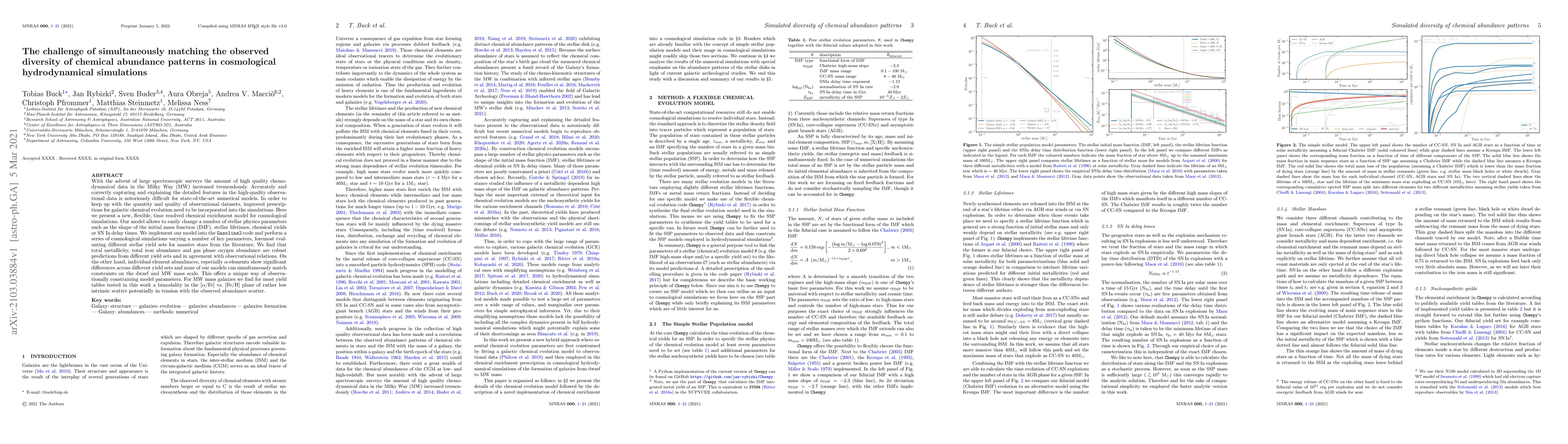 With the advent of large spectroscopic surveys the amount of high quality chemo-dynamical data in the Milky Way (MW) increased tremendously. Accurately and correctly capturing and explaining the detailed features in the high-quality observational data is notoriously difficult for state-of-the-art numerical models. In order to keep up with the quantity and quality of observational datasets, improved prescriptions for galactic chemical evolution need to be incorporated into the simulations. Here we present a new, flexible, time resolved chemical enrichment model for cosmological simulations. Our model allows to easily change a number of stellar physics parameters such as the shape of the initial mass function (IMF), stellar lifetimes, chemical yields or SN Ia delay times. We implement our model into the Gasoline2 code and perform a series of cosmological simulations varying a number of key parameters, foremost evaluating different stellar yield sets for massive stars from the literature. We find that total metallicity, total iron abundance and gas phase oxygen abundance are robust predictions from different yield sets and in agreement with observational relations. On the other hand, individual element abundances, especially $\alpha$-elements show significant differences across different yield sets and none of our models can simultaneously match constraints on the dwarf and MW mass scale. This offers a unique way of observationally constraining model parameters. For MW mass galaxies we find for most yield tables tested in this work a bimodality in the $[\alpha$/Fe] vs. [Fe/H] plane of rather low intrinsic scatter potentially in tension with the observed abundance scatter.