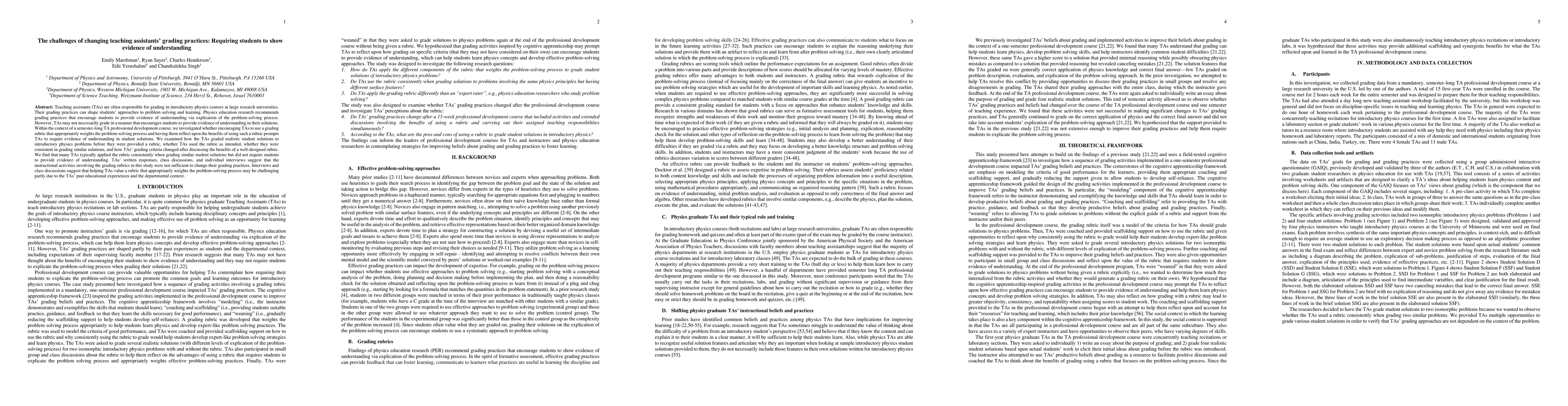 This study investigates the impact of a professional development course on teaching assistants' (TAs) grading practices in introductory physics, focusing on the use of a rubric that emphasizes the problem-solving process. Despite TAs' consistent application of the rubric, they often did not require students to provide evidence of understanding, indicating that the course activities were insufficient to change their grading practices, partly due to their past experiences and departmental context.