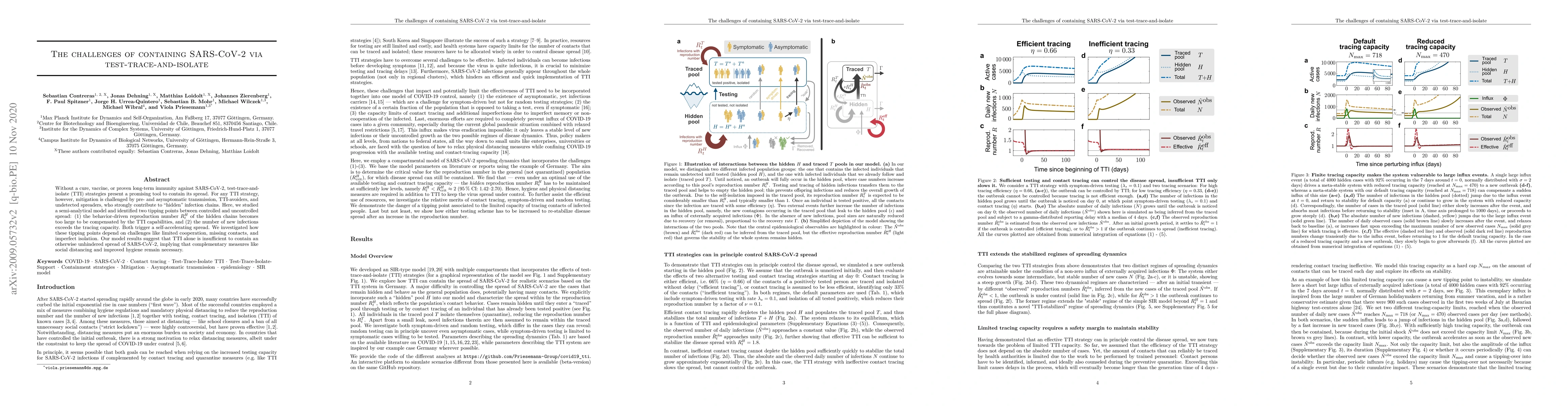 This paper explores the limitations of test-trace-and-isolate (TTI) strategies in containing SARS-CoV-2, identifying two tipping points for uncontrolled spread due to hidden infection chains and tracing capacity limits. It concludes that TTI alone is insufficient without complementary measures like social distancing and improved hygiene.