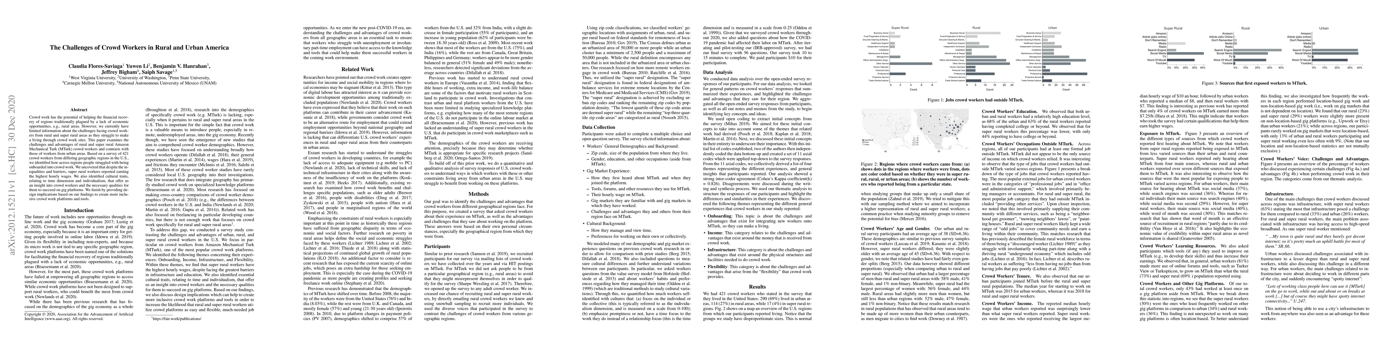 Crowd work has the potential of helping the financial recovery of regions traditionally plagued by a lack of economic opportunities, e.g., rural areas. However, we currently have limited information about the challenges facing crowd work-ers from rural and super rural areas as they struggle to make a living through crowd work sites. This paper examines the challenges and advantages of rural and super rural AmazonMechanical Turk (MTurk) crowd workers and contrasts them with those of workers from urban areas. Based on a survey of421 crowd workers from differing geographic regions in theU.S., we identified how across regions, people struggled with being onboarded into crowd work. We uncovered that despite the inequalities and barriers, rural workers tended to be striving more in micro-tasking than their urban counterparts. We also identified cultural traits, relating to time dimension and individualism, that offer us an insight into crowd workers and the necessary qualities for them to succeed on gig platforms. We finish by providing design implications based on our findings to create more inclusive crowd work platforms and tools