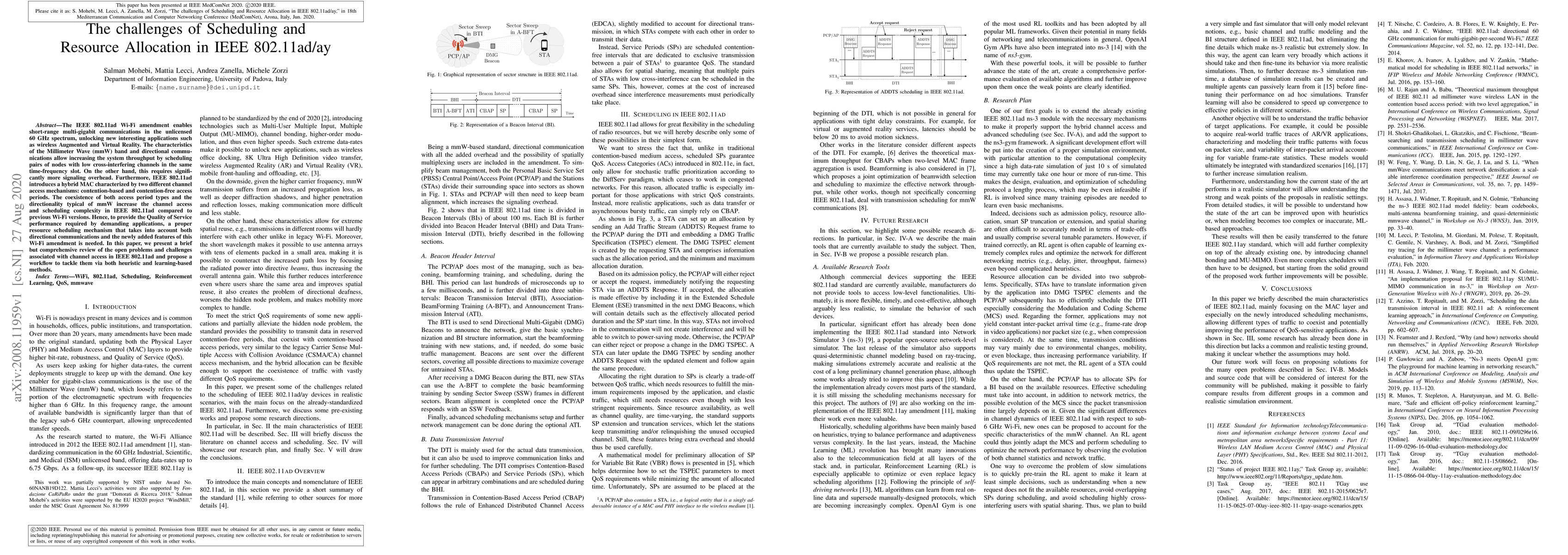 The IEEE 802.11ad WiFi amendment enables short-range multi-gigabit communications in the unlicensed 60~GHz spectrum, unlocking new interesting applications such as wireless Augmented and Virtual Reality. The characteristics of the mmWave band and directional communications allow increasing the system throughput by scheduling pairs of nodes with low cross-interfering channels in the same time-frequency slot. On the other hand, this requires significantly more signaling overhead. Furthermore, IEEE 802.11ad introduces a hybrid MAC characterized by two different channel access mechanisms: contention-based and contention-free access periods. The coexistence of both access period types and the directionality typical of mmWave increase the channel access and scheduling complexity in IEEE 802.11ad compared to previous WiFi versions. Hence, to provide the Quality of Service (QoS) performance required by demanding applications, a proper resource scheduling mechanism that takes into account both directional communications and the newly added features of this WiFi amendment is needed. In this paper, we present a brief but comprehensive review of the open problems and challenges associated with channel access in IEEE 802.11ad and propose a workflow to tackle them via both heuristic and learning-based methods.