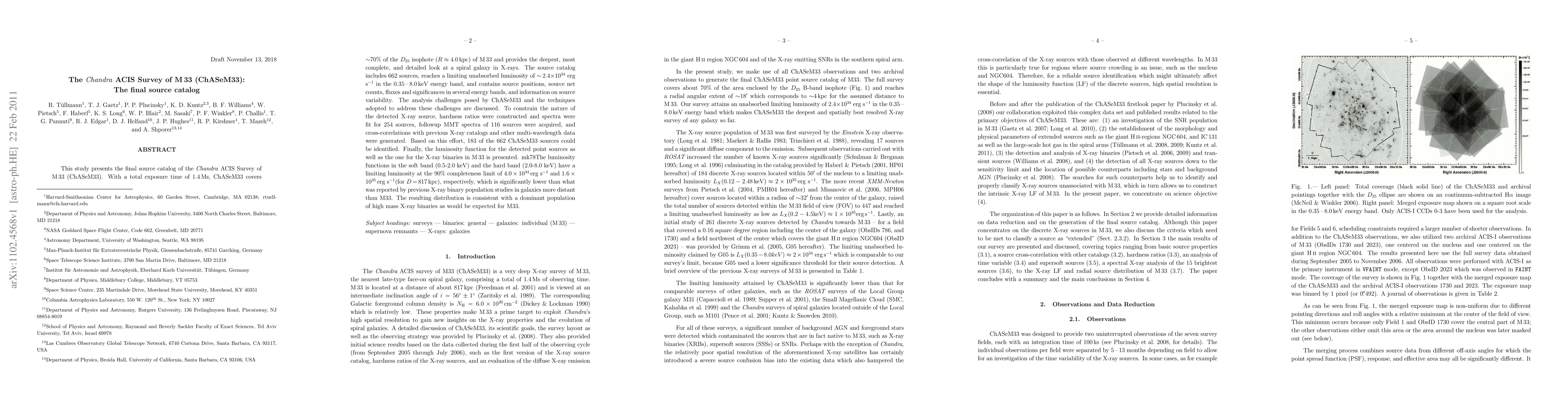 The Chandra ACIS Survey of M33 (ChASeM33) presents a comprehensive X-ray source catalog of 662 sources, achieving the deepest view of a spiral galaxy in X-rays, and identifies 183 sources through cross-correlation and spectral analysis, revealing a lower luminosity function than previously reported for X-ray binaries.