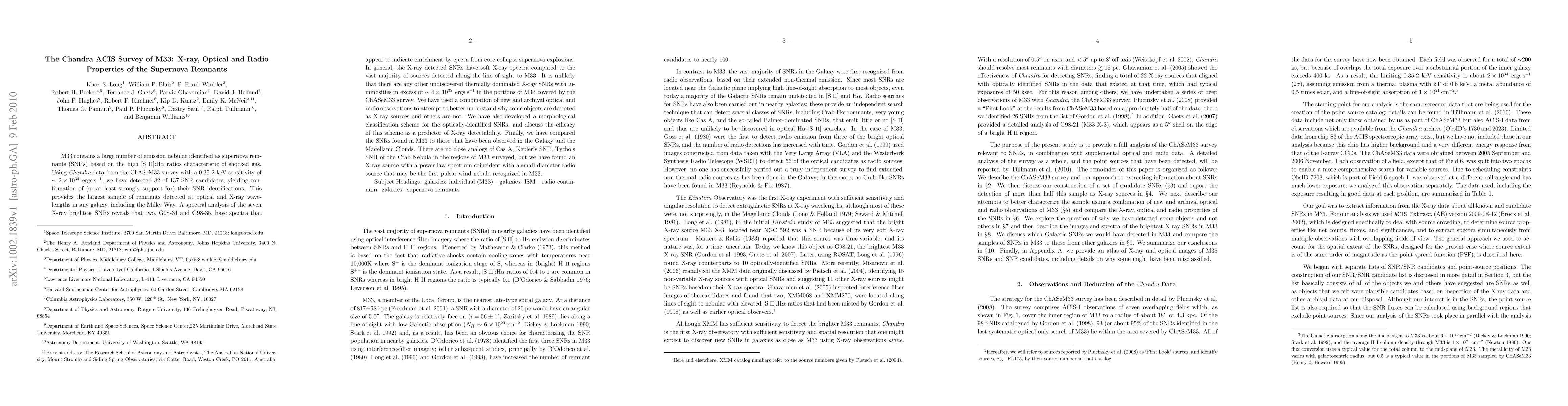 This paper reports the detection of 82 supernova remnants (SNRs) in M33 using Chandra X-ray data, confirming their identifications and providing insights into their spectral and morphological properties. The study also compares M33's SNRs to those in the Milky Way and Magellanic Clouds, noting the absence of close analogs of prominent Galactic SNRs.