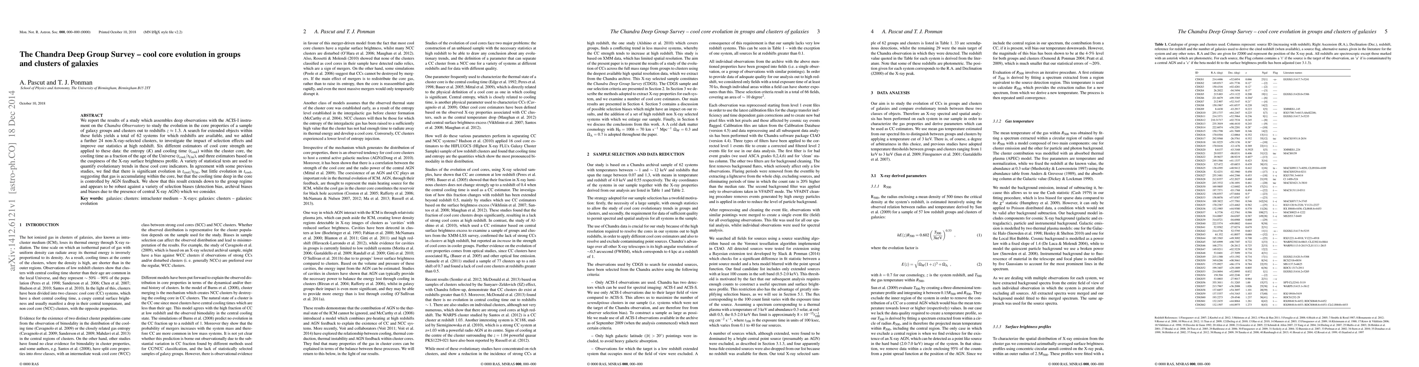 The Chandra Deep Group Survey investigates the evolution of cool core properties in galaxy groups and clusters up to redshifts $z\approx 1.3$. The study finds significant evolution in the cooling time fraction relative to the age of the Universe, indicating gas accumulation, but minimal change in absolute cooling time, suggesting AGN feedback controls core cooling.