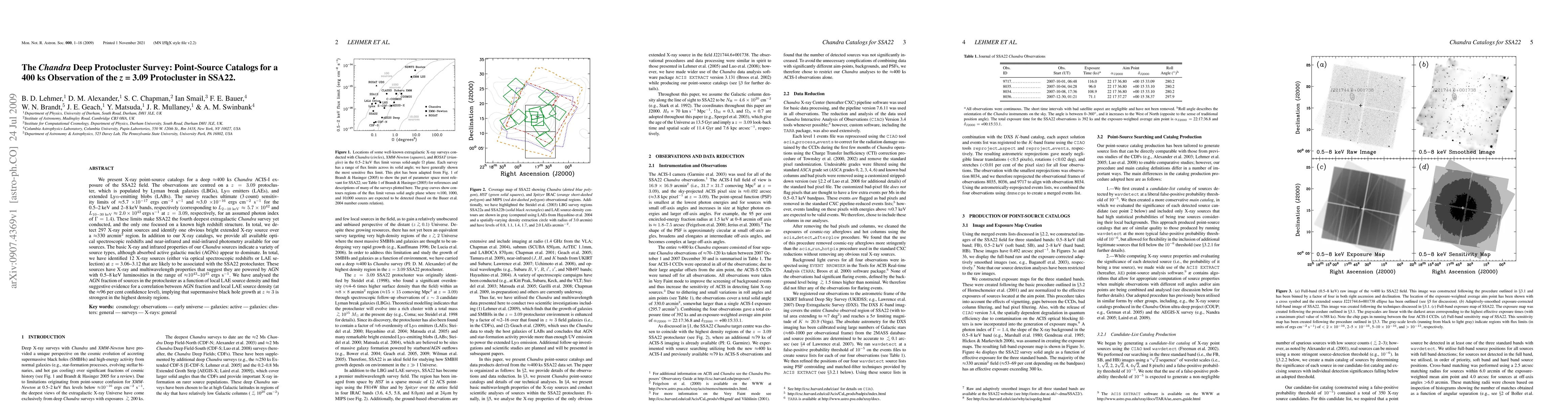 The Chandra Deep Protocluster Survey presents X-ray point-source catalogs from a 400 ks observation of the z = 3.09 protocluster SSA22, detecting 297 sources and identifying a dominant population of absorbed AGNs. Evidence suggests a correlation between AGN fraction and local LAE density, indicating enhanced black hole growth in denser regions.