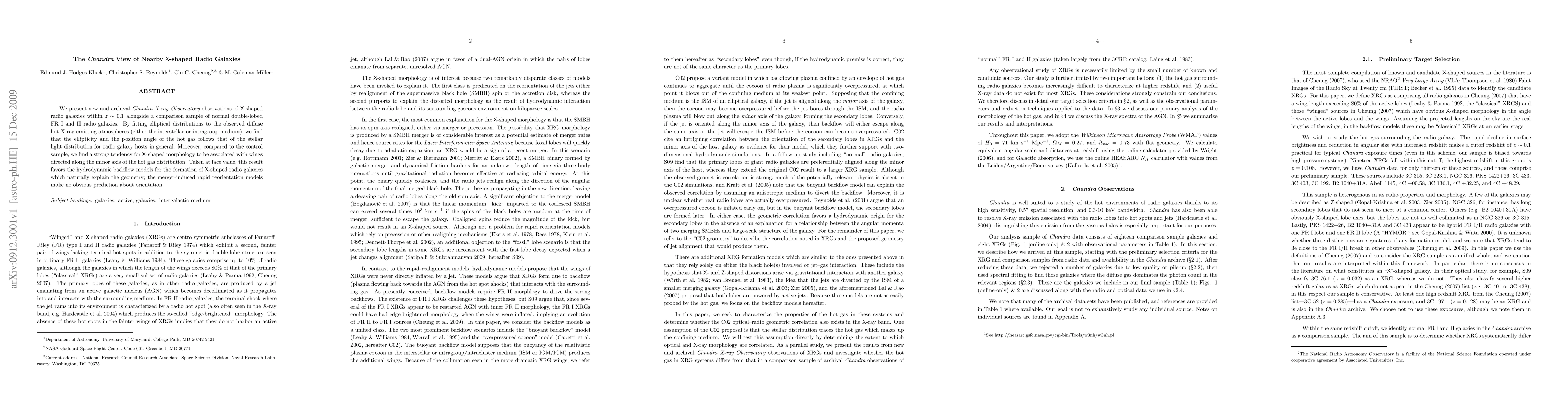 We present new and archival Chandra X-ray Observatory observations of X-shaped radio galaxies within z < 0.1 alongside a comparison sample of normal double-lobed FR I and II radio galaxies. By fitting elliptical distributions to the observed diffuse hot X-ray emitting atmospheres, we find that the ellipticity and the position angle of the hot gas follows that of the stellar light distribution for radio galaxy hosts in general. Moreover, compared to the control sample, we find a strong tendency for X-shaped morphology to be associated with wings directed along the minor axis of the hot gas distribution. Taken at face value, this result favors the hydrodynamic backflow models for the formation of X-shaped radio galaxies which naturally explain the geometry; the merger-induced rapid reorientation models make no obvious prediction about orientation.