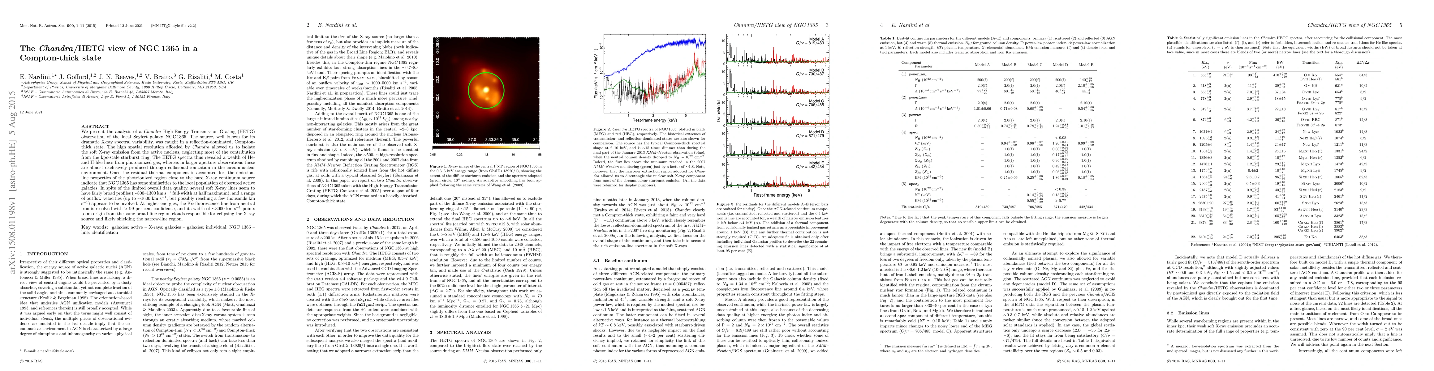 We present the analysis of a Chandra High-Energy Transmission Grating (HETG) observation of the local Seyfert galaxy NGC 1365. The source, well known for its dramatic X-ray spectral variability, was caught in a reflection-dominated, Compton-thick state. The high spatial resolution afforded by Chandra allowed us to isolate the soft X-ray emission from the active nucleus, neglecting most of the contribution from the kpc-scale starburst ring. The HETG spectra thus revealed a wealth of He- and H-like lines from photoionized gas, whereas in larger aperture observations these are almost exclusively produced through collisional ionization in the circumnuclear environment. Once the residual thermal component is accounted for, the emission-line properties of the photoionized region close to the hard X-ray continuum source indicate that NGC 1365 has some similarities to the local population of obscured active galaxies. In spite of the limited overall data quality, several soft X-ray lines seem to have fairly broad profiles (~800-1300 km/s full-width at half maximum), and a range of outflow velocities (up to ~1600 km/s, but possibly reaching a few thousands km/s) appears to be involved. At higher energies, the K$\alpha$ fluorescence line from neutral iron is resolved with > 99 per cent confidence, and its width of ~3000 km/s points to an origin from the same broad-line region clouds responsible for eclipsing the X-ray source and likely shielding the narrow-line region.