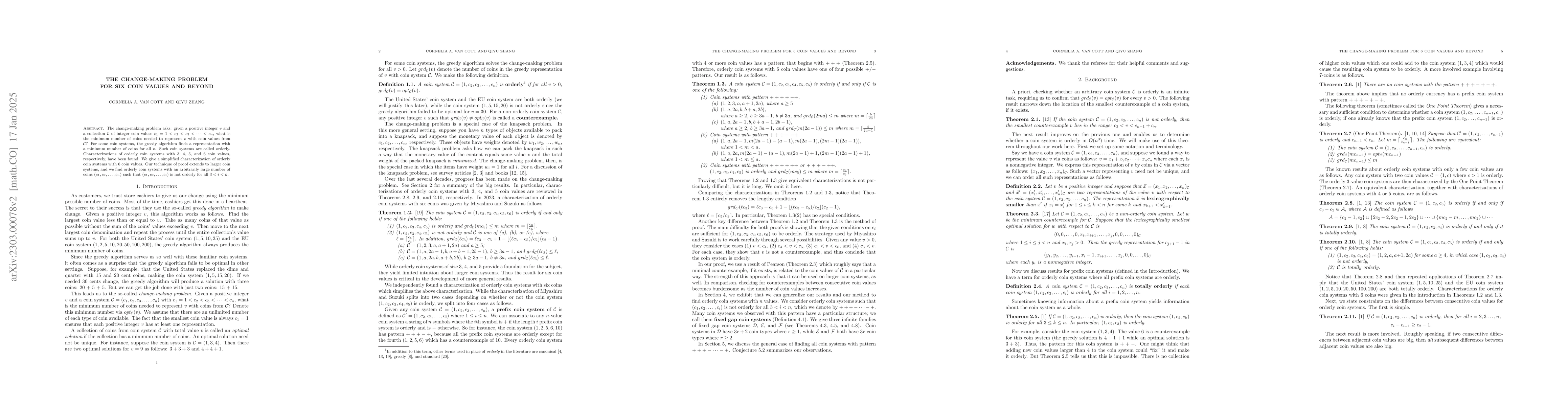 This paper characterizes orderly coin systems with six coin values and extends the findings to generalize orderly coin systems with any number of coin values, addressing the change-making problem where the greedy algorithm fails to always produce minimal coin representations.