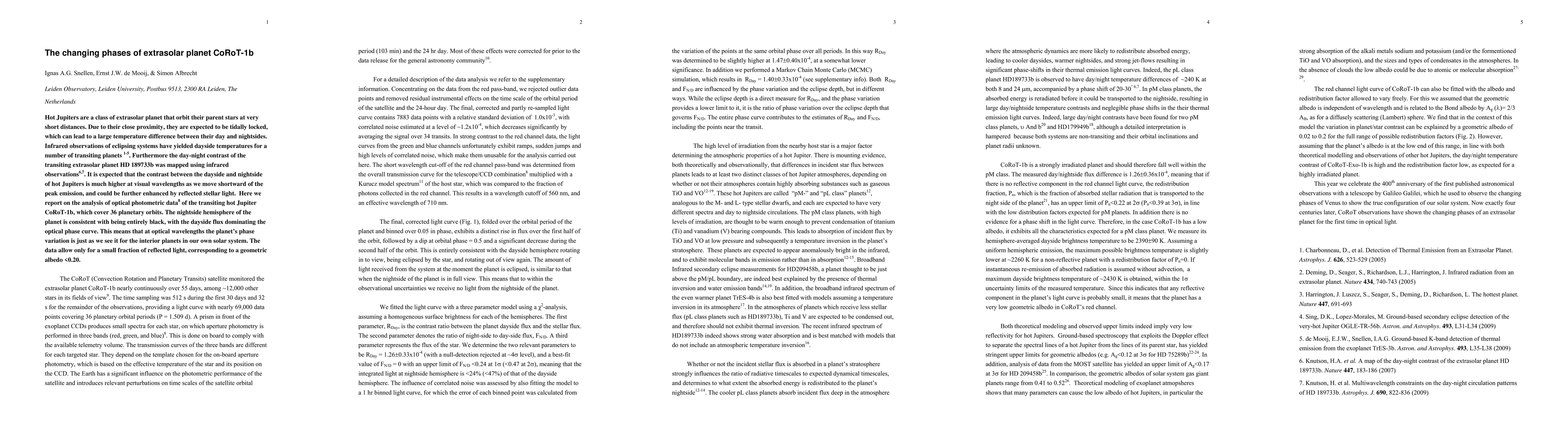 The study of CoRoT-1b reveals that its nightside hemisphere is entirely dark, with only a small fraction of reflected light, suggesting a black surface.