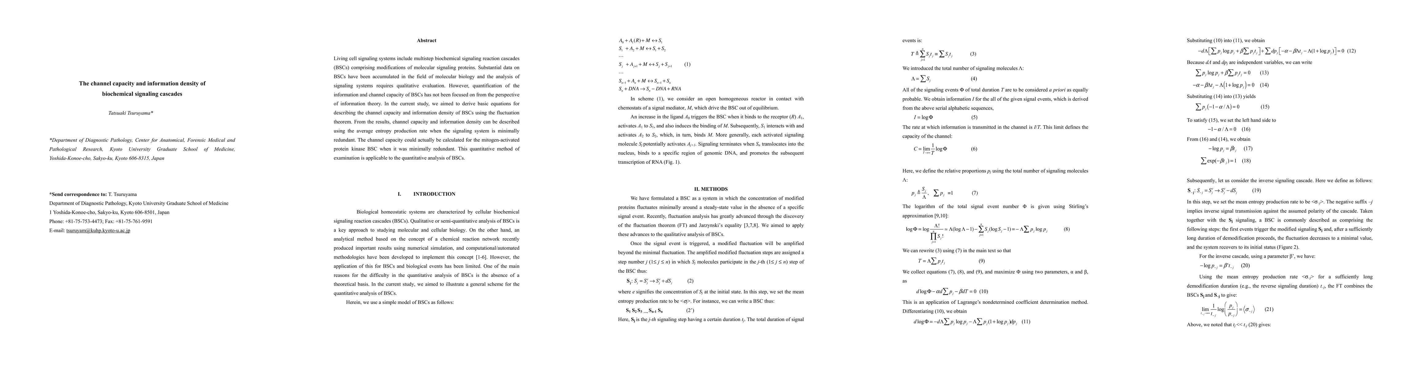 This study derives equations to quantify the channel capacity and information density of multistep biochemical signaling cascades using the fluctuation theorem. It demonstrates that these can be calculated using the average entropy production rate, providing a quantitative method applicable to the analysis of such signaling systems.