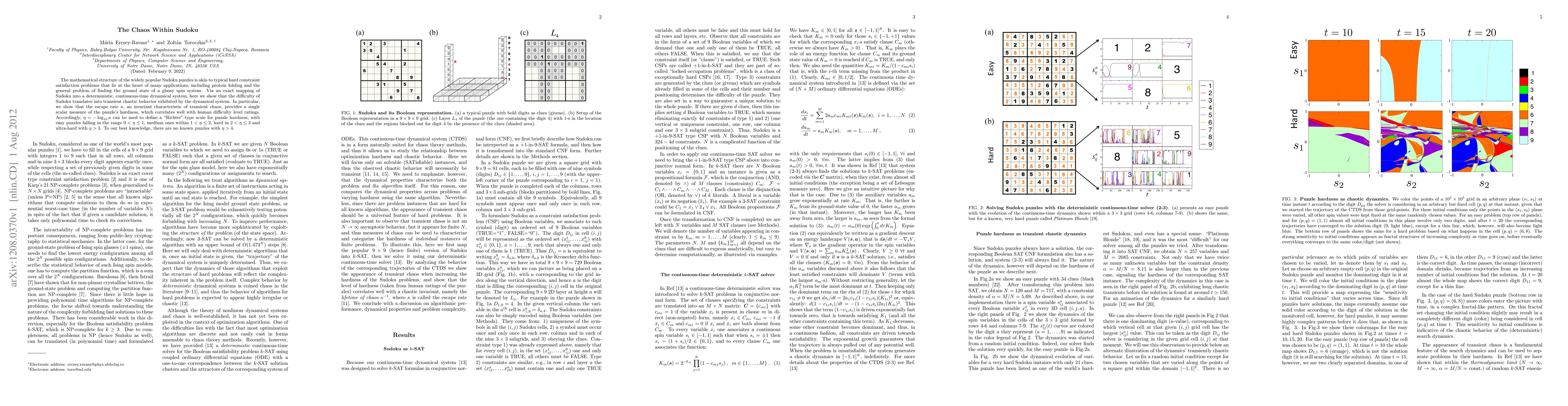 This paper maps Sudoku puzzles to a deterministic dynamical system, demonstrating that puzzle difficulty correlates with transient chaotic behavior. The escape rate $\kappa$ measures this chaos, and $\eta = -\log_{10}{\kappa}$ defines a "Richter" scale for puzzle hardness, categorizing puzzles from easy to ultra-hard.