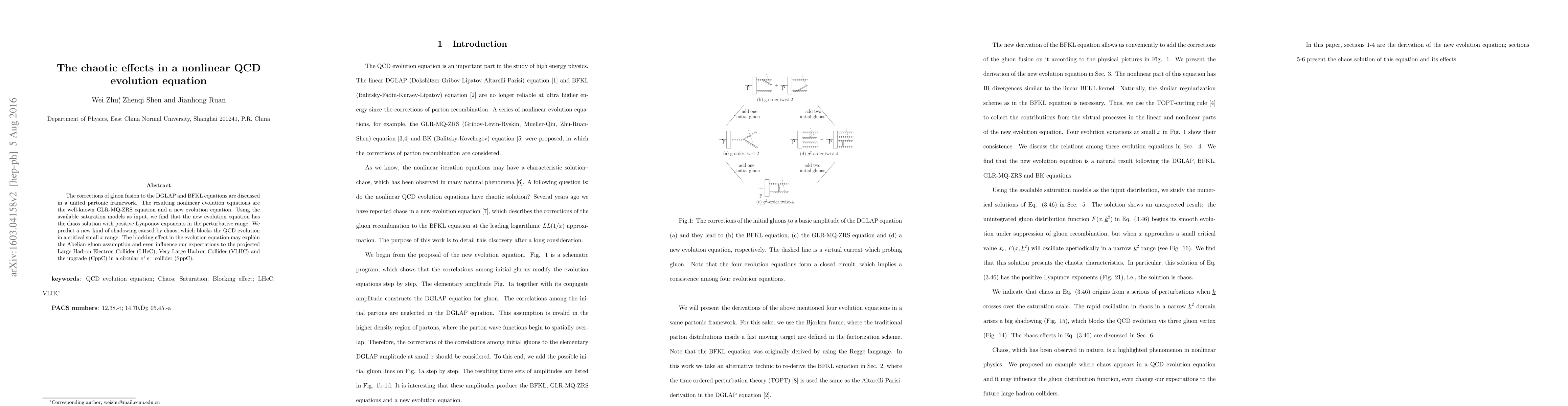 The corrections of gluon fusion to the DGLAP and BFKL equations are discussed in a united partonic framework. The resulting nonlinear evolution equations are the well-known GLR-MQ-ZRS equation and a new evolution equation. Using the available saturation models as input, we find that the new evolution equation has the chaos solution with positive Lyaponov exponents in the perturbative range. We predict a new kind of shadowing caused by chaos, which blocks the QCD evolution in a critical small $x$ range. The blocking effect in the evolution equation may explain the Abelian gluon assumption and even influence our expectations to the projected Large Hadron Electron Collider (LHeC), Very Large Hadron Collider (VLHC) and the upgrade (CppC) in a circular $e^+e^-$ collider (SppC).