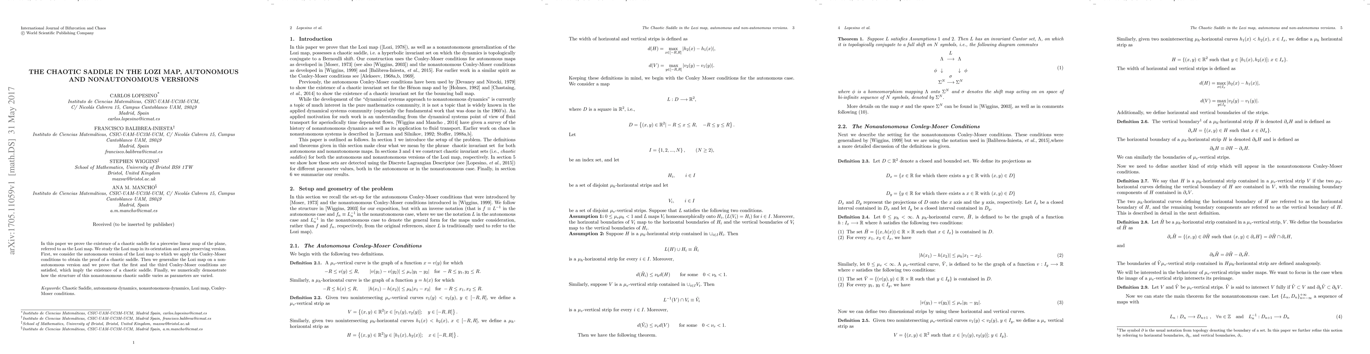This paper proves the existence of a chaotic saddle in both the autonomous and non-autonomous versions of the Lozi map, using Conley-Moser conditions for the autonomous case and numerical analysis for the non-autonomous case. It shows how the chaotic saddle structure changes with parameter variations in the non-autonomous version.
