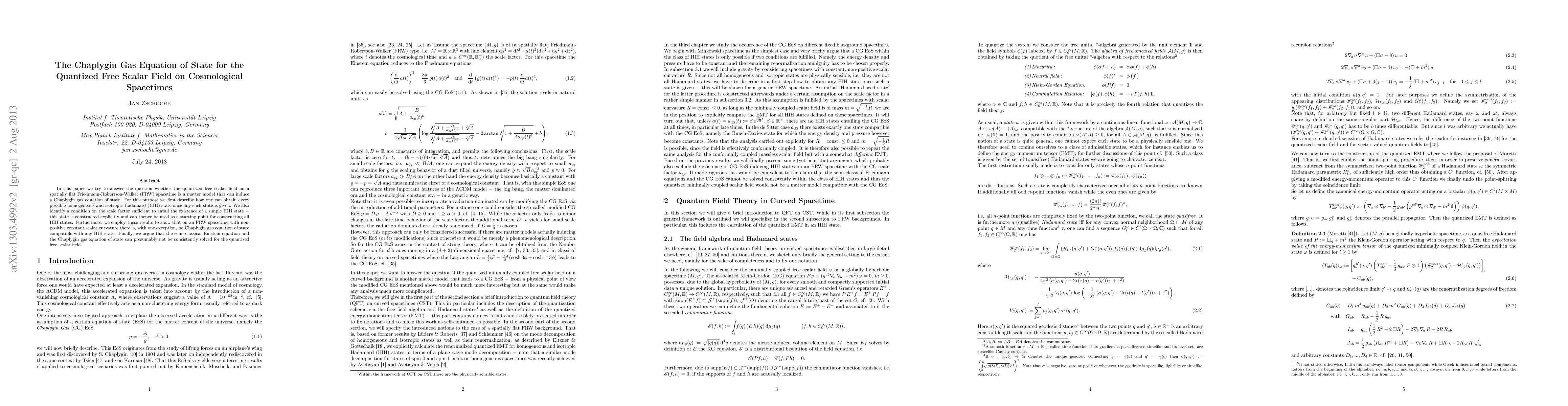 Researchers investigate if a quantized free scalar field can induce a Chaplygin gas equation of state on cosmological spacetimes and find that most cases result in incompatible solutions, suggesting the semi-classical Einstein equation and Chaplygin gas equation of state cannot be consistently solved.