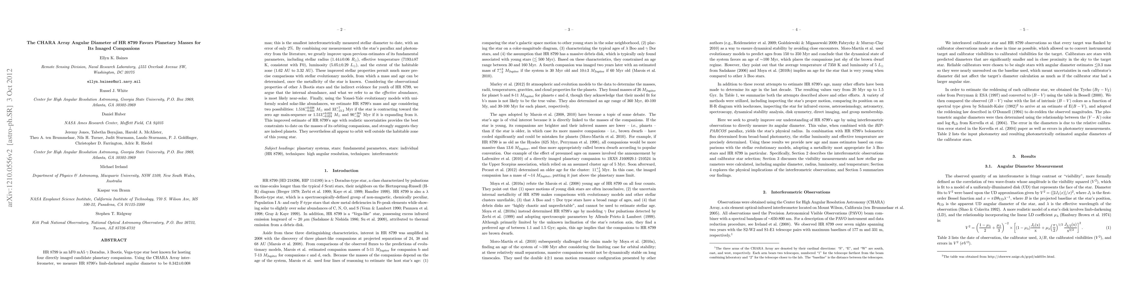 This study uses the CHARA Array to measure the angular diameter of HR 8799, revealing a small stellar size and improved fundamental parameters. The refined mass and age estimates suggest the star's four imaged companions are likely planets, though they orbit outside the star's habitable zone.