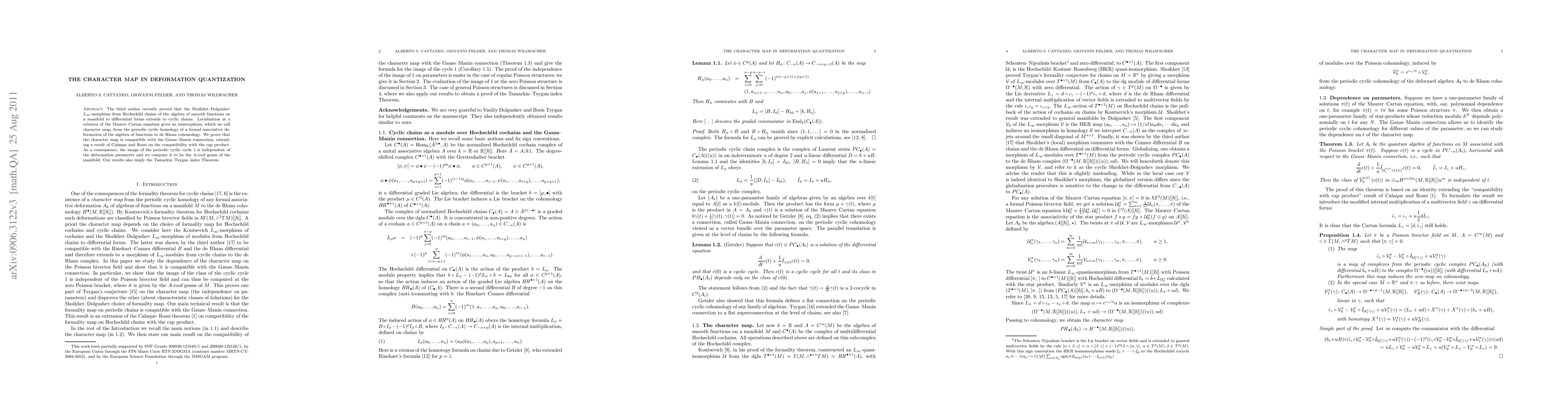 The third author recently proved that the Shoikhet-Dolgushev L-infinity-morphism from Hochschild chains of the algebra of smooth functions on manifold to differential forms extends to cyclic chains. Localization at a solution of the Maurer-Cartan equation gives an isomorphism, which we call character map, from the periodic cyclic homology of a formal associative deformation of the algebra of functions to de Rham cohomology. We prove that the character map is compatible with the Gauss-Manin connection, extending a result of Calaque and Rossi on the compatibility with the cap product. As a consequence, the image of the periodic cyclic cycle 1 is independent of the deformation parameter and we compute it to be the A-roof genus of the manifold. Our results also imply the Tamarkin-Tsygan index Theorem.