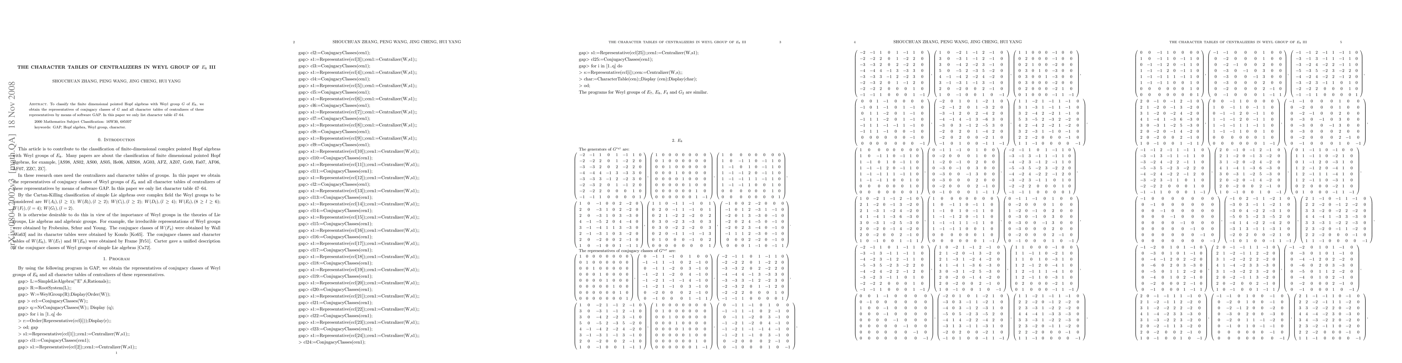 To classify the finite dimensional pointed Hopf algebras with Weyl group $G$ of $E_8$, we obtain the representatives of conjugacy classes of $G$ and all character tables of centralizers of these representatives by means of software GAP. In this paper we only list character table 47--64.
