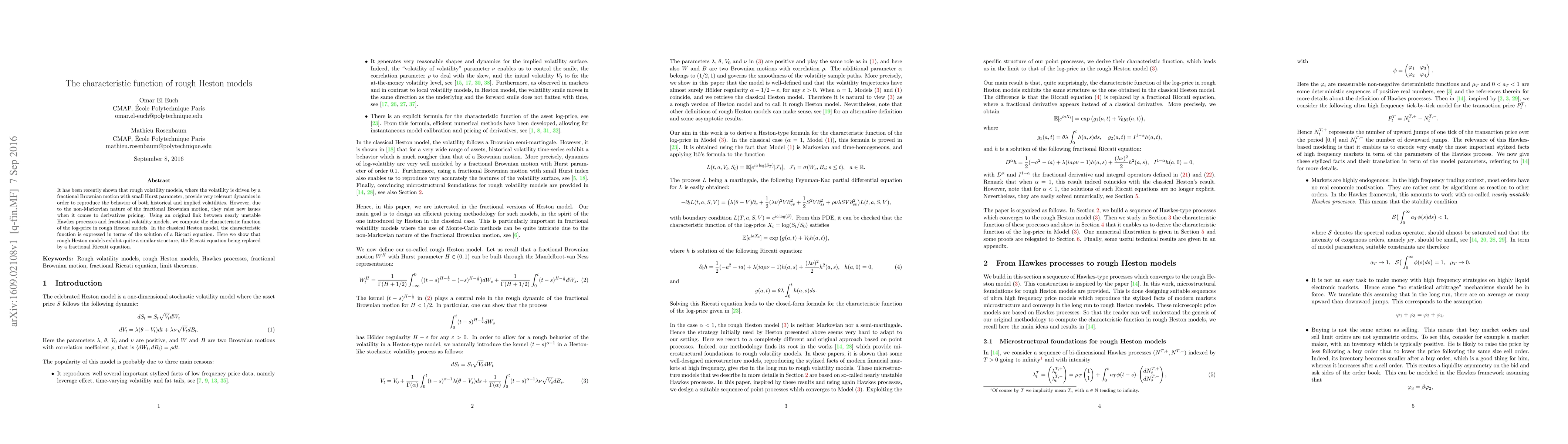This paper explores rough volatility models driven by fractional Brownian motion to better capture historical and implied volatilities, addressing the non-Markovian nature through a link with nearly unstable Hawkes processes. It computes the characteristic function of the log-price in rough Heston models, replacing the classical Riccati equation with a fractional Riccati equation.