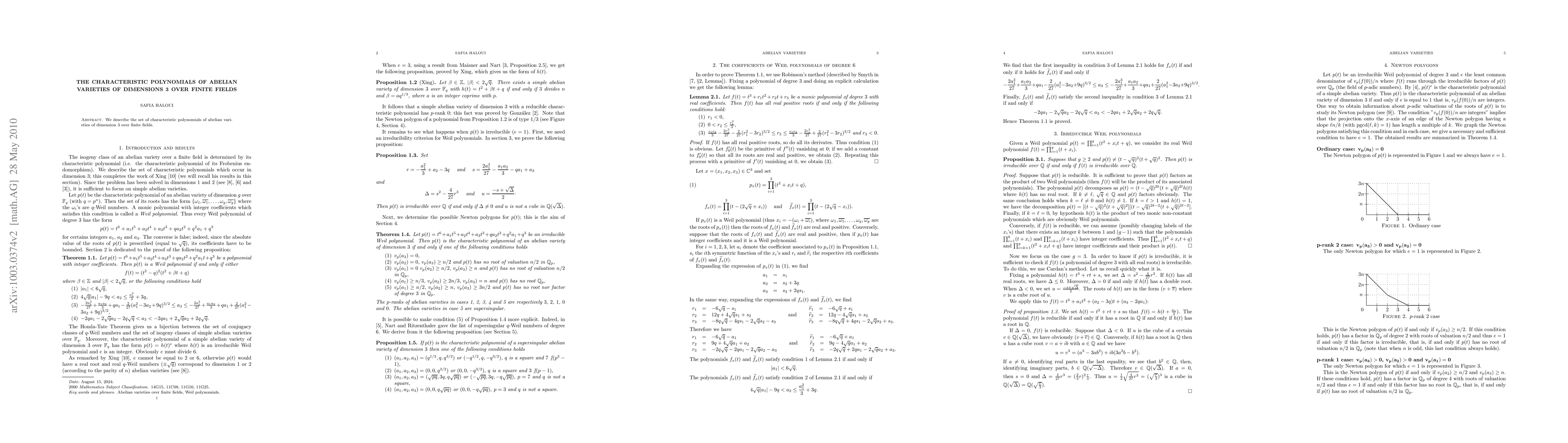 Summary: This study characterizes the set of characteristic polynomials associated with abelian varieties of dimension 3 over finite fields, providing a detailed analysis of their properties and distribution.