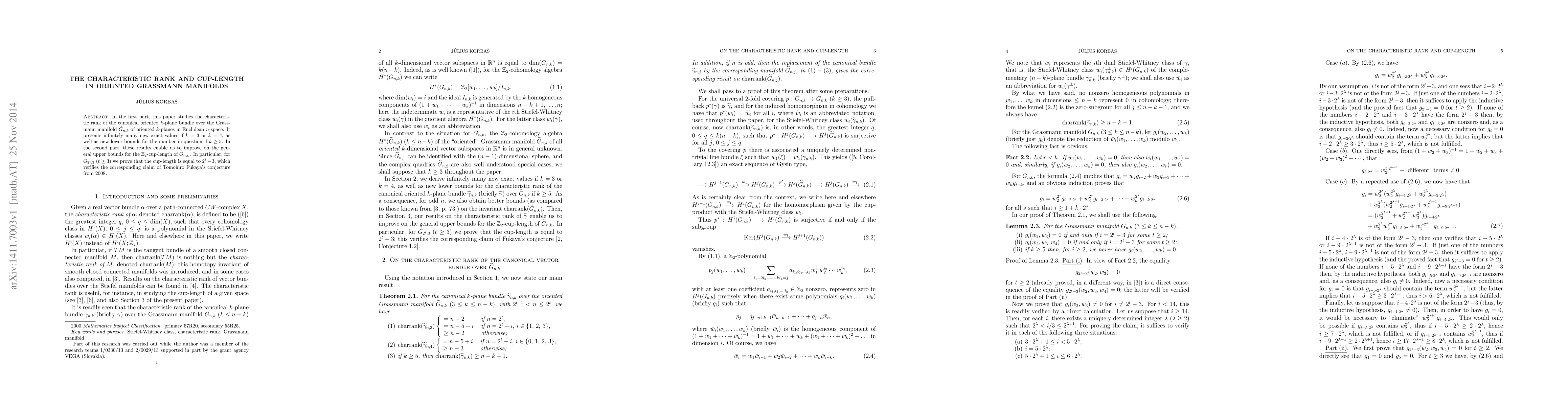 This research paper studies the characteristic rank of oriented Grassmann manifolds and improves upon general upper bounds for cup-length, verifying a conjecture from 2008.