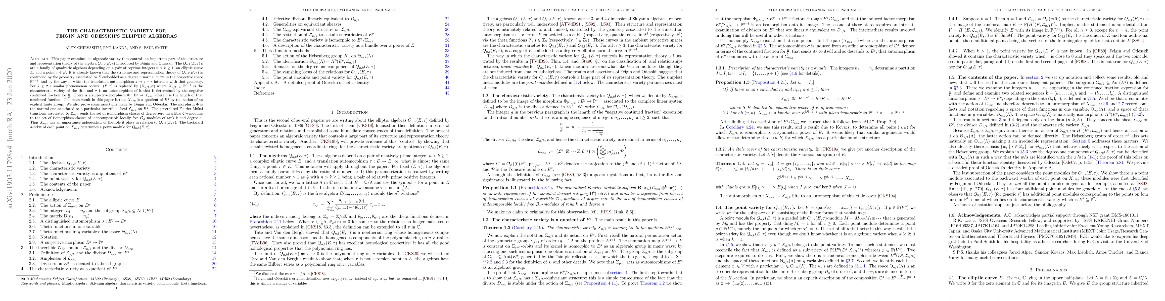 This paper explores the characteristic variety $X_{n/k}$ crucial for understanding the structure and representation theory of Feigin and Odesskii's elliptic algebras $Q_{n,k}(E, au)$. The main finding is that $X_{n/k}$ is a quotient of $E^g$ by an explicit finite group, where $g$ is derived from the continued fraction of $n/k$. The study also reveals a surjective morphism $Phi:E^g o X_{n/k}$ associated with an invertible sheaf $mathcal L_{n/k}$, which links degree-zero invertible $mathcal O_E$-modules to indecomposable locally free $mathcal O_E$-modules of rank $k$ and degree $n$, highlighting $X_{n/k}$'s independent significance.