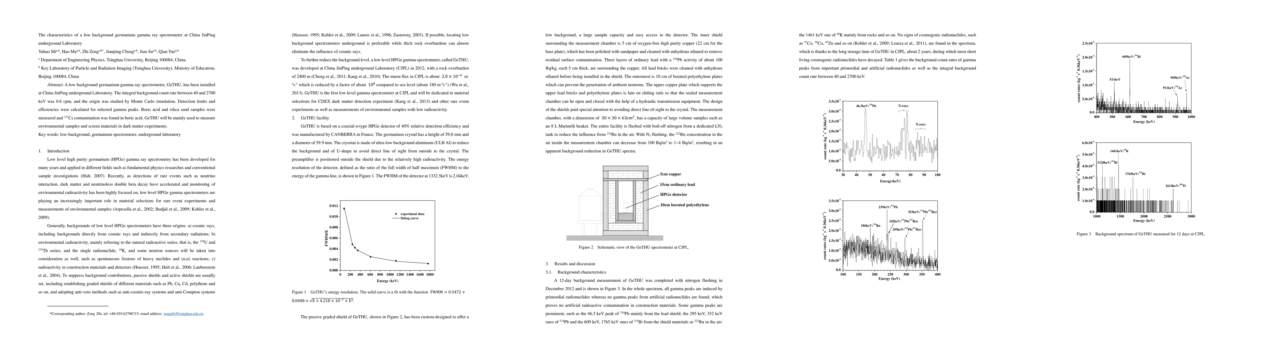 A low background germanium gamma ray spectrometer, GeTHU, was installed at China JinPing underground Laboratory, achieving an integral background count rate of 0.6 cpm between 40 and 2700 keV, with applications in environmental sample measurement and dark matter experiments. Boric acid and silica sand samples were analyzed, revealing 137Cs contamination in boric acid.