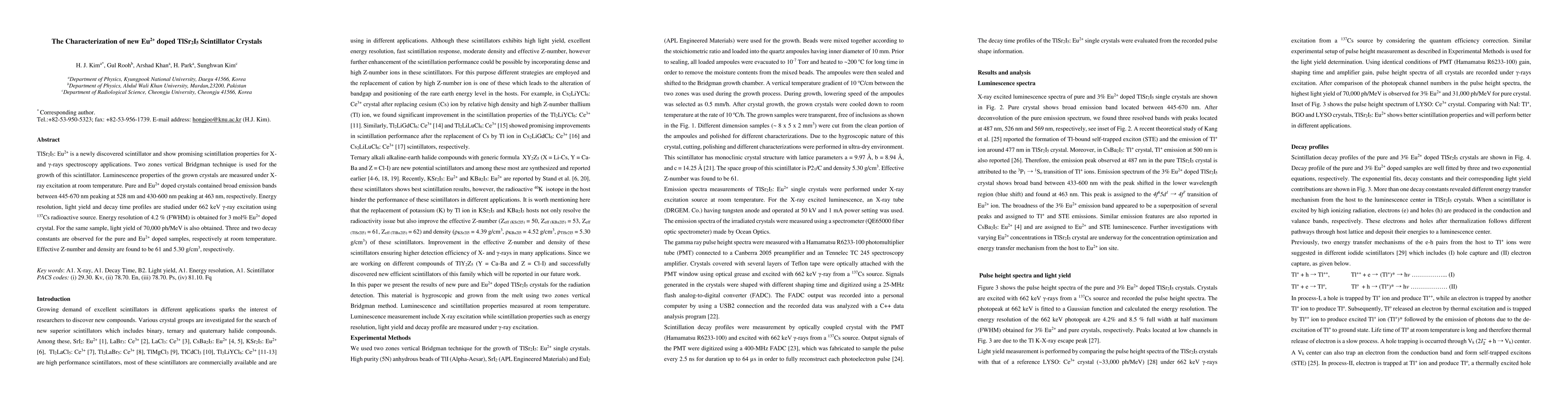 TlSr2I5: Eu2+ is a newly discovered scintillator and show promising scintillation properties for X- and {\gamma}-rays spectroscopy applications. Two zones vertical Bridgman technique is used for the growth of this scintillator. Luminescence properties of the grown crystals are measured under X-ray excitation at room temperature. Pure and Eu2+ doped crystals contained broad emission bands between 445-670 nm peaking at 528 nm and 430-600 nm peaking at 463 nm, respectively. Energy resolution, light yield and decay time profiles are studied under 662 keV {\gamma}-ray excitation using 137Cs radioactive source. Energy resolution of 4.2 % (FWHM) is obtained for 3 mol% Eu2+ doped crystal. For the same sample, light yield of 70,000 ph/MeV is also obtained. Three and two decay constants are observed for the pure and Eu2+ doped samples, respectively at room temperature. Effective Z-number and density are found to be 61 and 5.30 g/cm3, respectively.