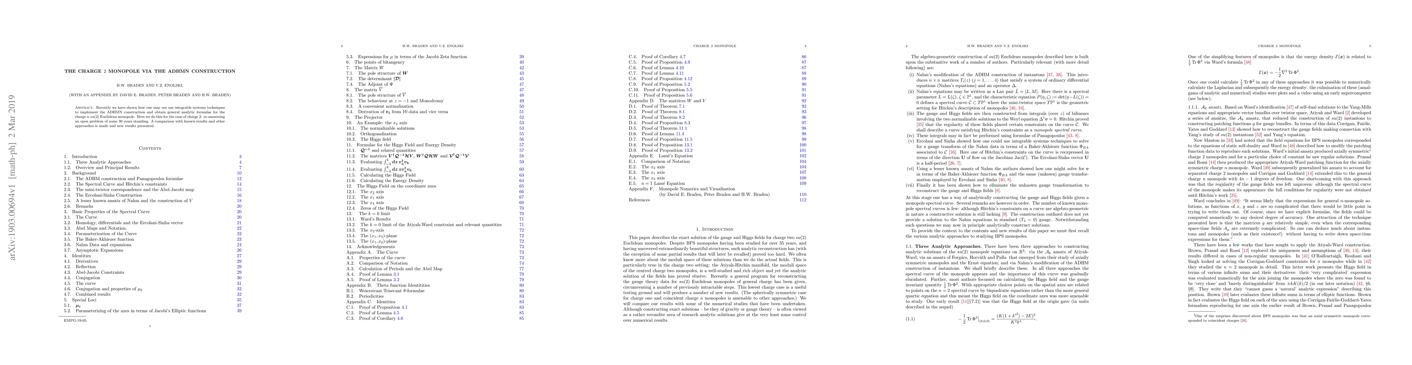 Recently we have shown how one may use use integrable systems techniques to implement the ADHMN construction and obtain general analytic formulae for the charge n su(2) Euclidean monopole. Here we do this for the case of charge 2: so answering an open problem of some 30 years standing. A comparison with known results and other approaches is made and new results presented.
