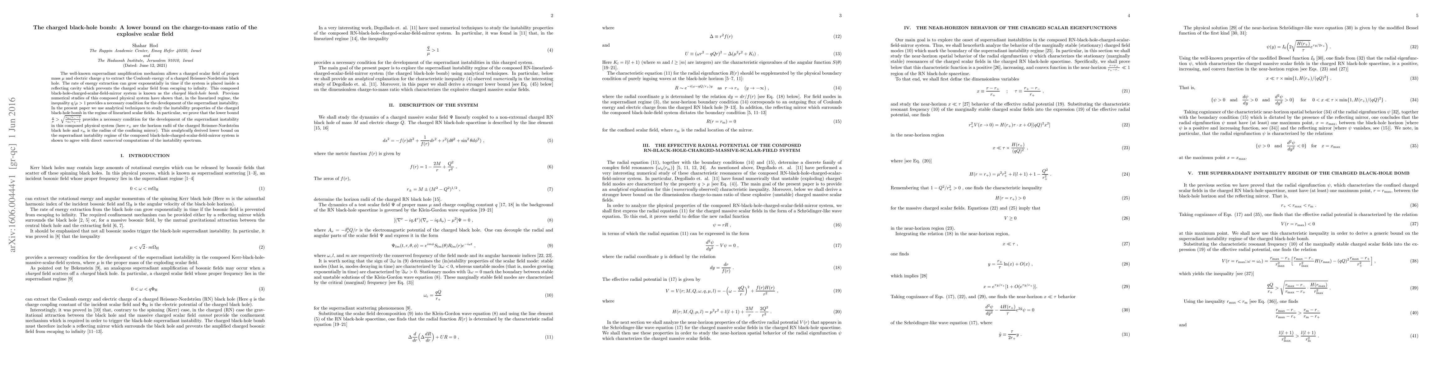 This paper analytically determines a lower bound for the charge-to-mass ratio of a charged scalar field that allows for the superradiant instability in a charged black-hole bomb system, confirming previous numerical findings with a new theoretical framework. The derived lower bound is shown to match numerical computations of the instability spectrum.