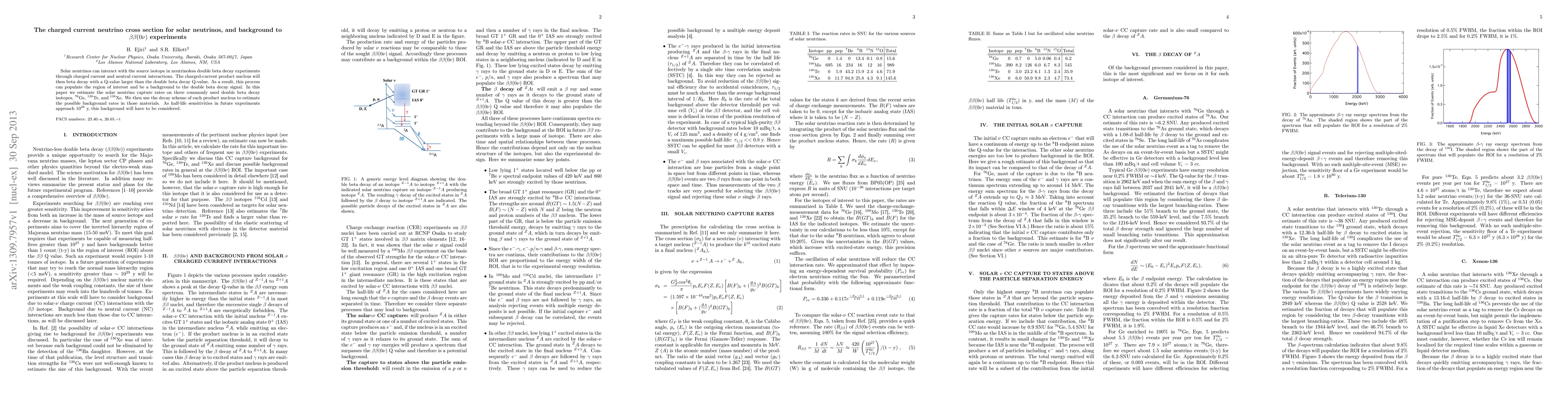 Solar neutrinos can interact with the source isotope in neutrinoless double beta decay experiments through charged current and neutral current interactions. The charged-current product nucleus will then beta decay with a Q-value larger than the double beta decay Q-value. As a result, this process can populate the region of interest and be a background to the double beta decay signal. In this paper we estimate the solar neutrino capture rates on three commonly used double beta decay isotopes, \nuc{76}{Ge}, \nuc{130}{Te}, and \nuc{136}{Xe}. We then use the decay scheme of each product nucleus to estimate the possible background rates in those materials. As half-life sensitivities in future experiments approach $10^{28}$ y, this background will have to be considered.