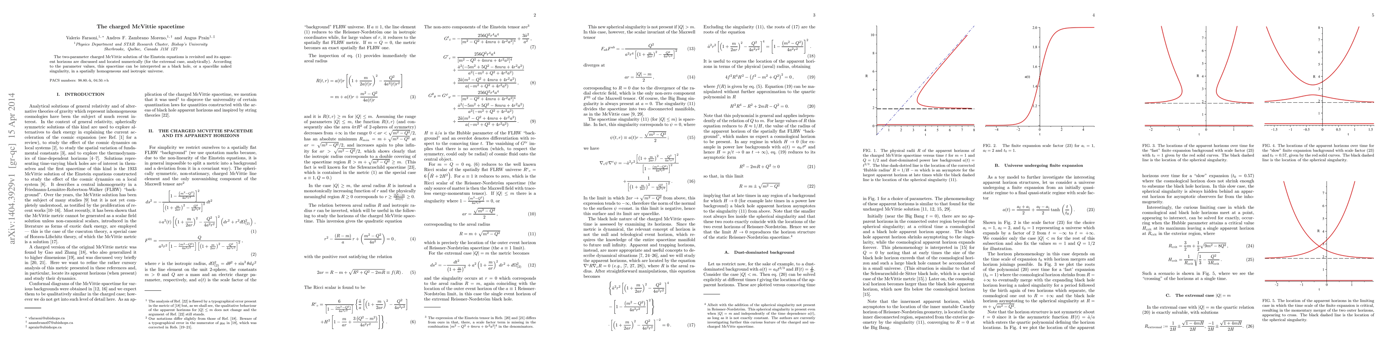 The two-parameter charged McVittie solution of the Einstein equations is revisited and its apparent horizons are discussed and located numerically (for the extremal case, analytically). According to the parameter values, this spacetime can be interpreted as a black hole, or a spacelike naked singularity, in a spatially homogeneous and isotropic universe.