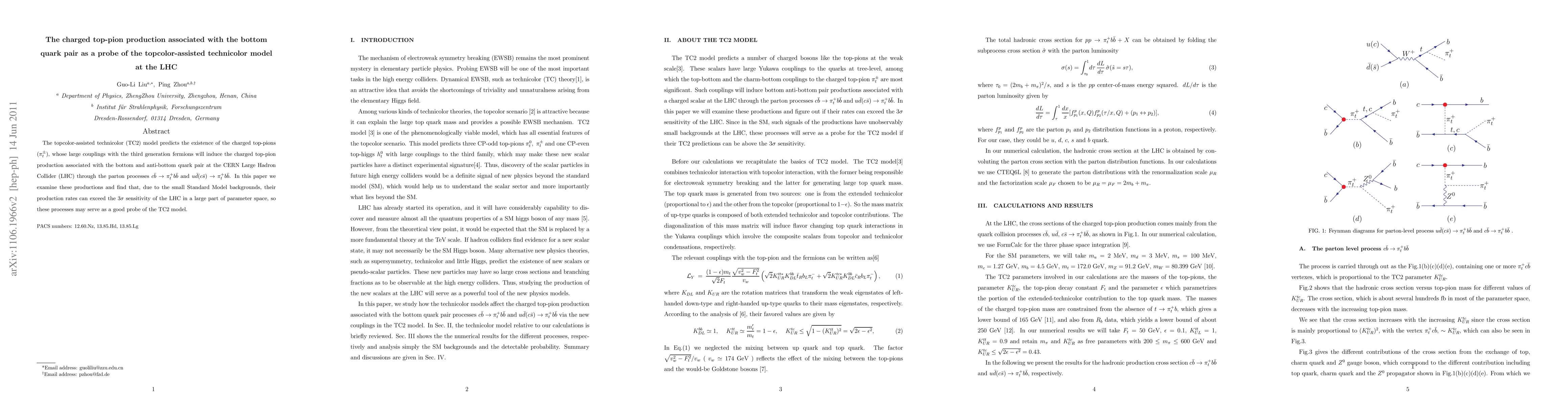 This paper investigates the production of charged top-pions ($\pi_t^\pm$) in association with bottom quark pairs at the LHC, as predicted by the topcolor-assisted technicolor model. The study finds that these processes can exceed the $3\sigma$ sensitivity of the LHC, making them a promising probe for the TC2 model.