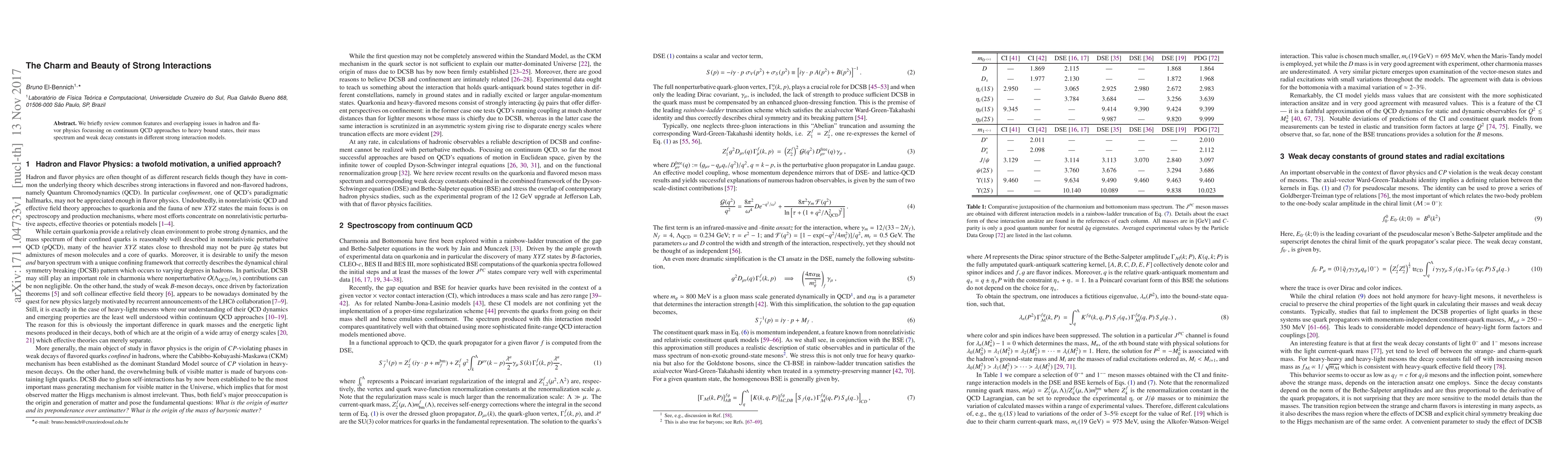 We briefly review common features and overlapping issues in hadron and flavor physics focussing on continuum QCD approaches to heavy bound states, their mass spectrum and weak decay constants in different strong interaction models.